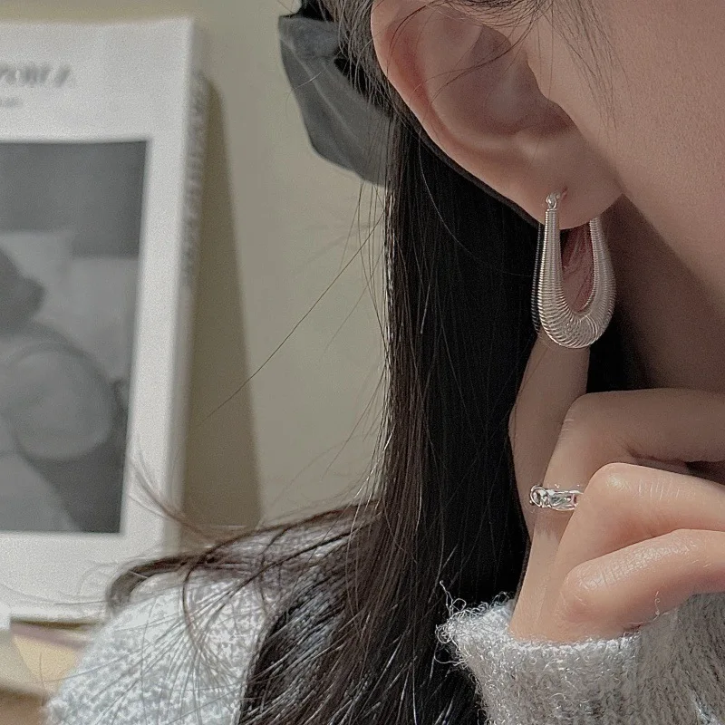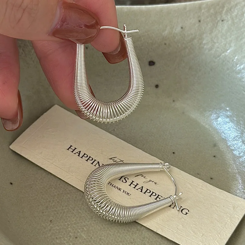 CHOZON S925 Solid Silver Spring Ear Cuff Korean Vintage Minimalist Dainty Jewelry Gift for Women