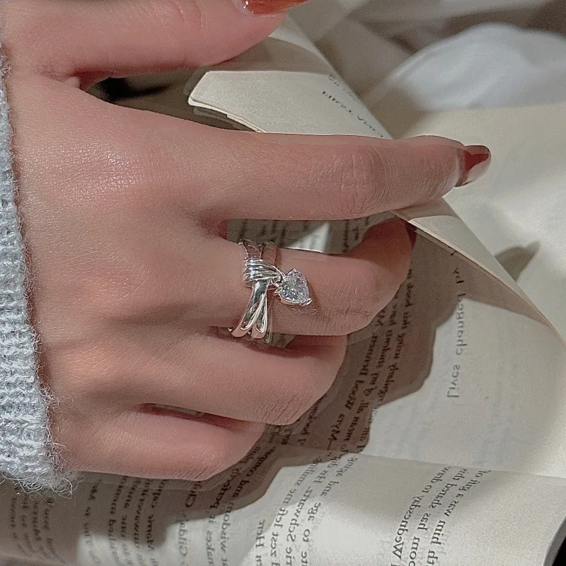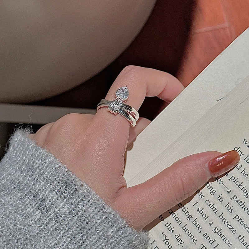 CHOZON S925 Solid Silver Zircon Ring Korean Vintage Minimalist Stacking Jewelry Gift for Women