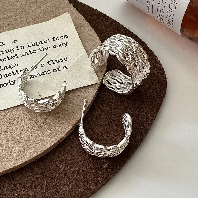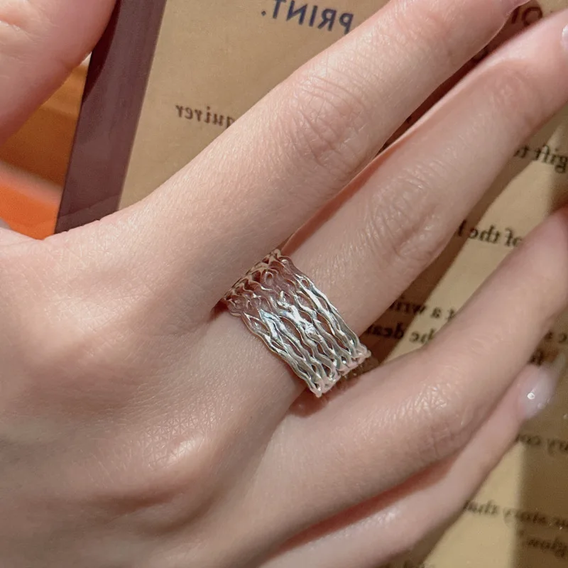 CHOZON S925 Sterling Silver Spanish Niche Design Sense Multi-layer Wave Base Ring Japanese Simple Retro Wholesale