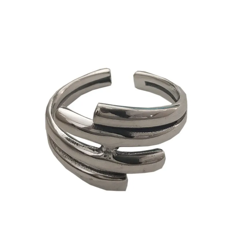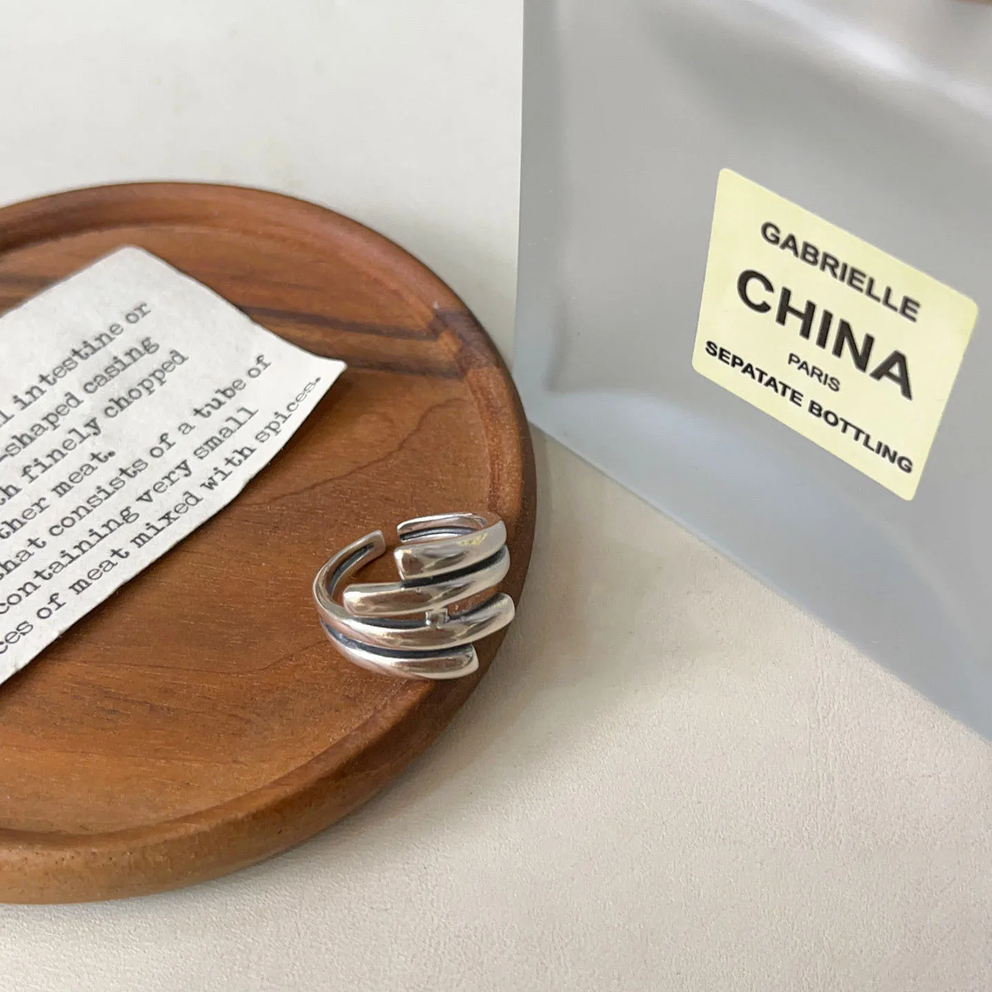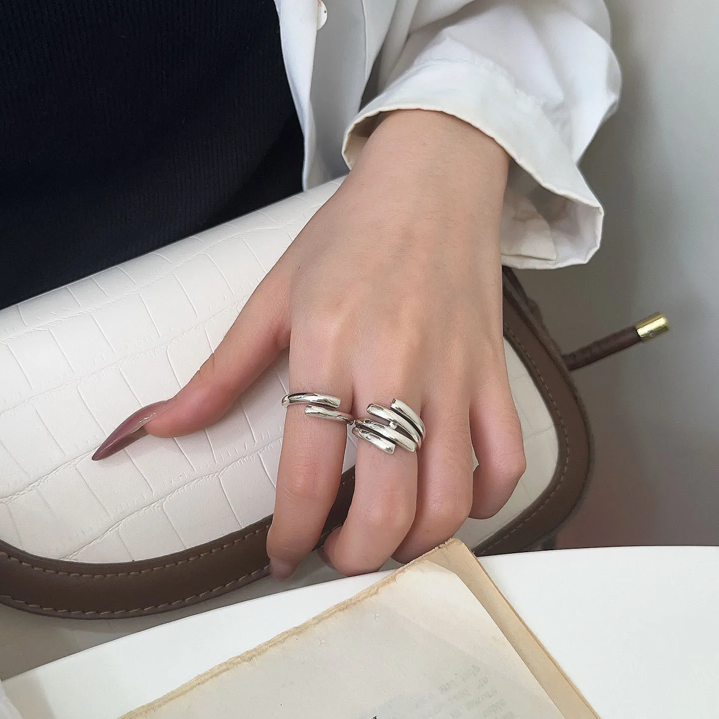 CHOZON S925 Sterling Silver Vertical Staggered Ring Women’s Irregular Unique Niche Design Exquisite Ring Open Ring
