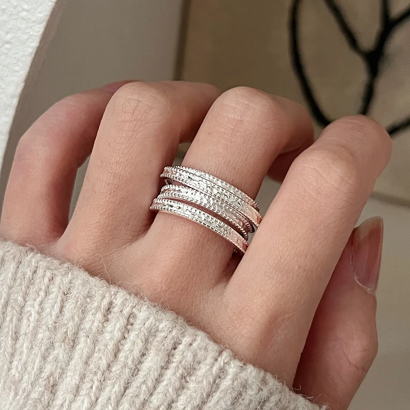 CHOZON Whole Body S925 Sterling Silver Multi-layer Line Winding Ring Niche Unique Design Light Luxury High-end Index Finger Ring