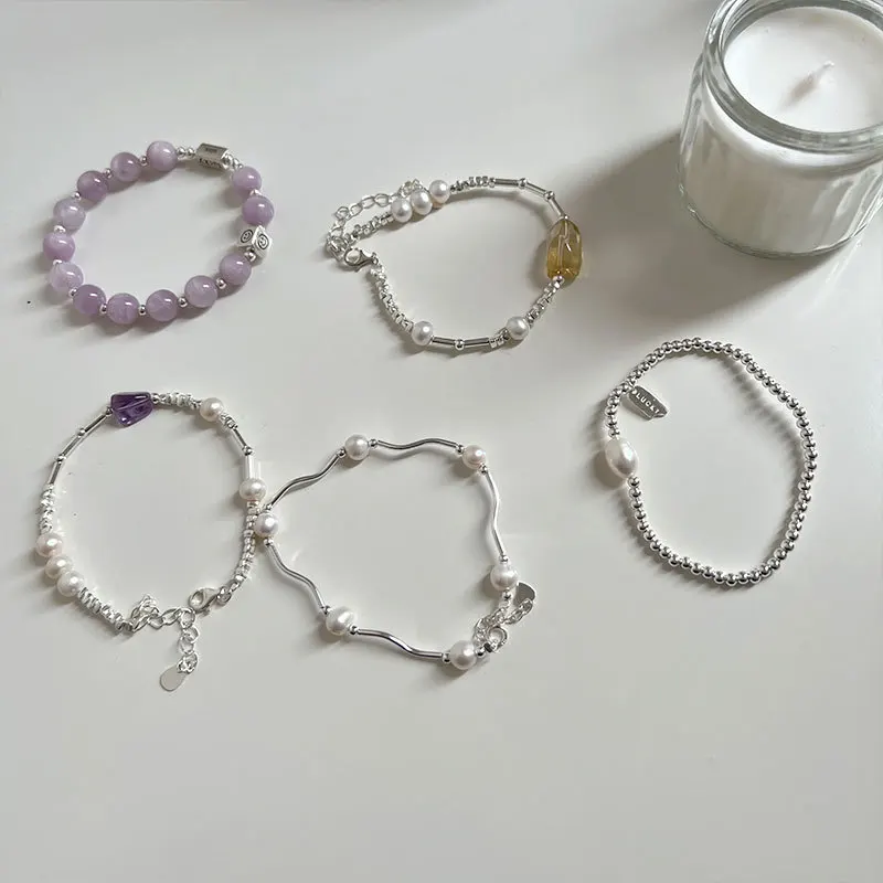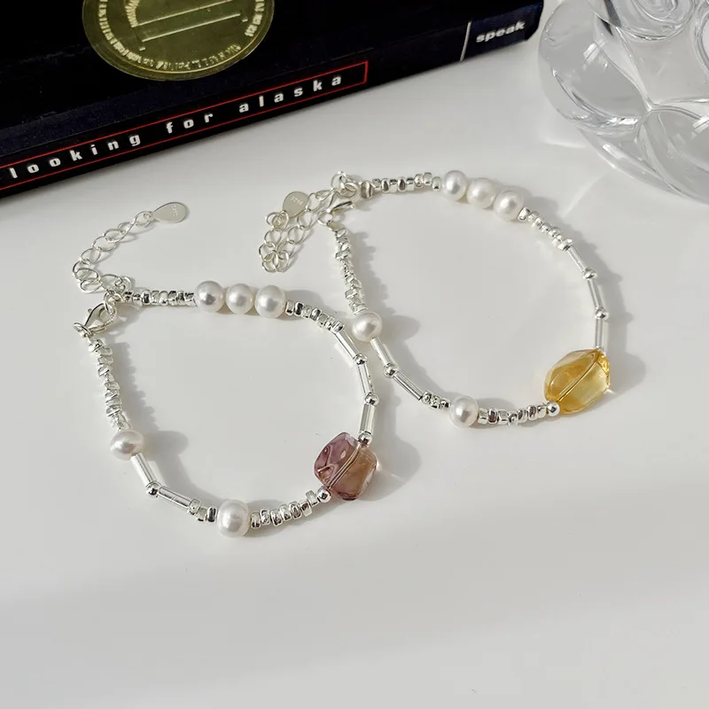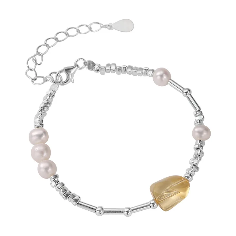 Citrine Bracelet 925 Sterling Silver Irregular Broken Silver Original Design Sweet and Elegant Girlfriend Bracelet