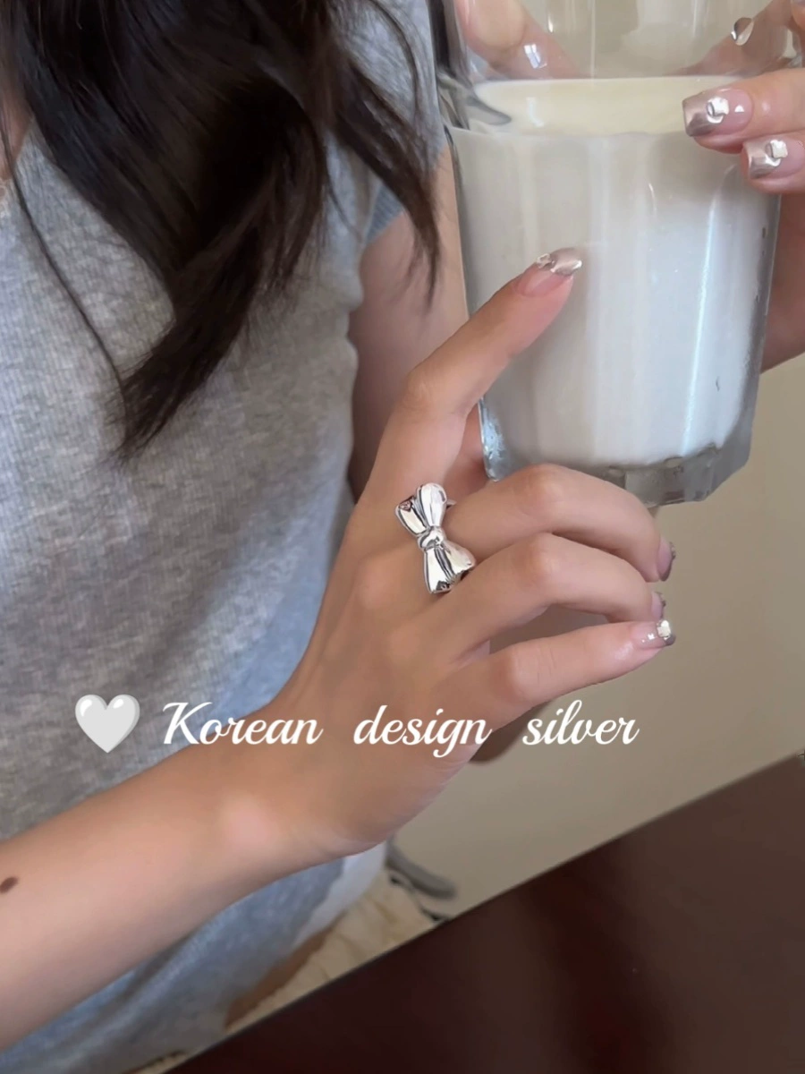 Dongdaemun, South Korea S925 sterling silver heavy industry thickened solid bow open ring female ins scenery high-end