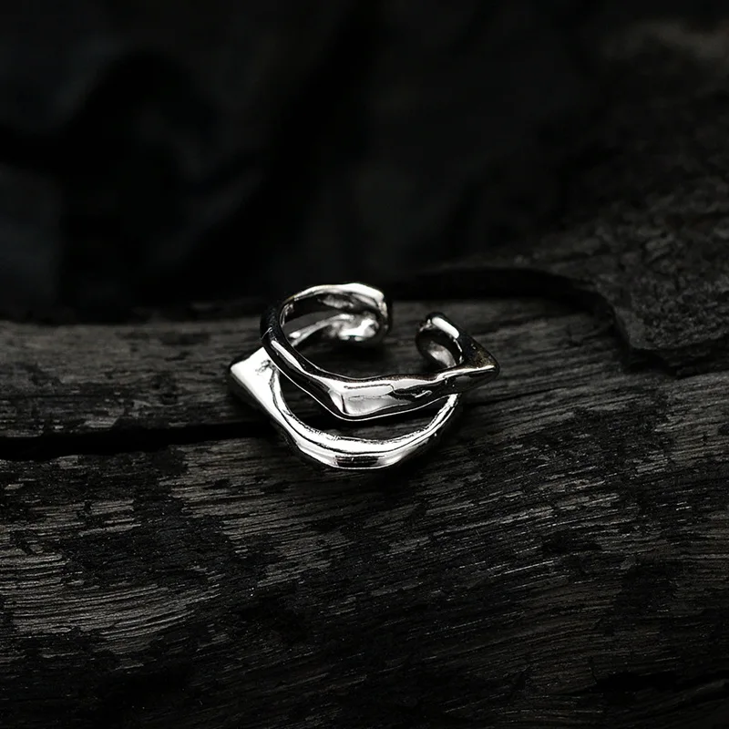 F.I.N.S 1PC Geometric S925 Silver Ear Clip No Hole Double Layer Irregular Ear Cuffs for Women Fake Piercing Catilage Jewelry