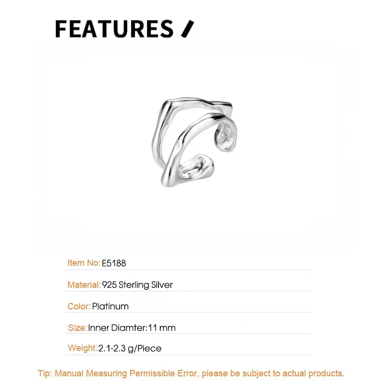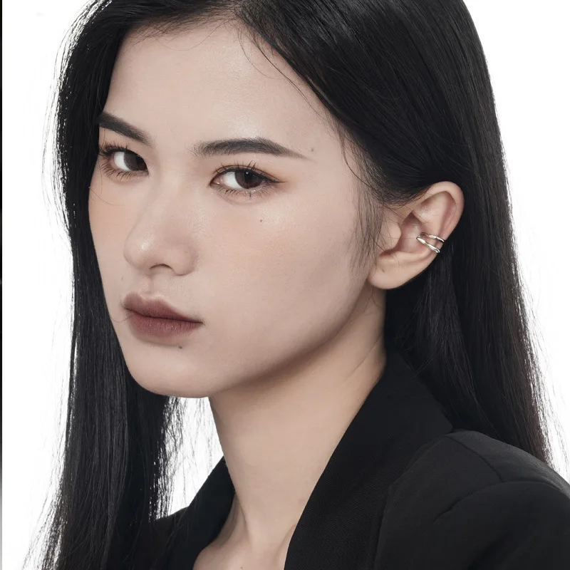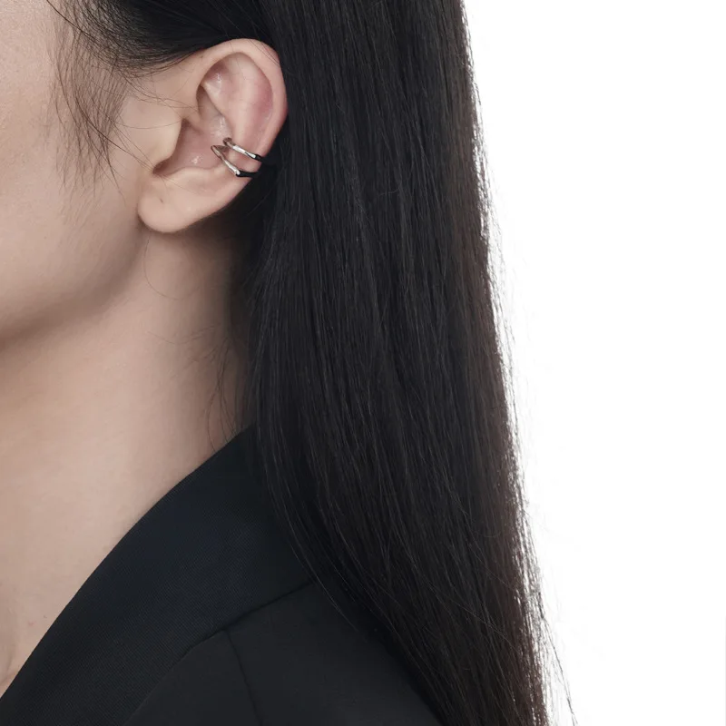 Jewel Type : F.I.N.S 1PC Geometric S925 Silver Ear Clip No Hole Double Layer Irregular Ear Cuffs for Women Fake Piercing Catilage Jewelry