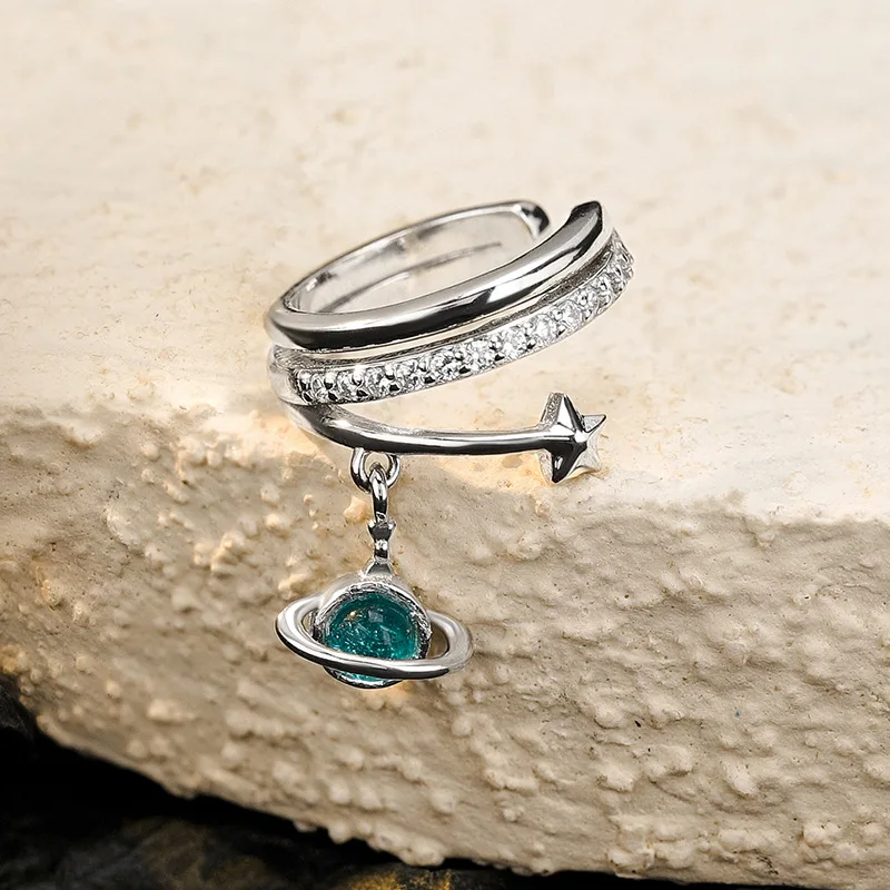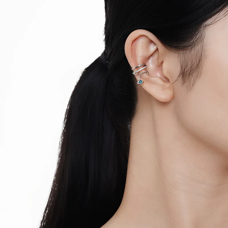 Jewel Type : F.I.N.S 1PC Korean Real S925 Sterling Silver Planet Ear Clip without Piercing Layered Zircon Star Earcuff Catilage Fine Jewelry