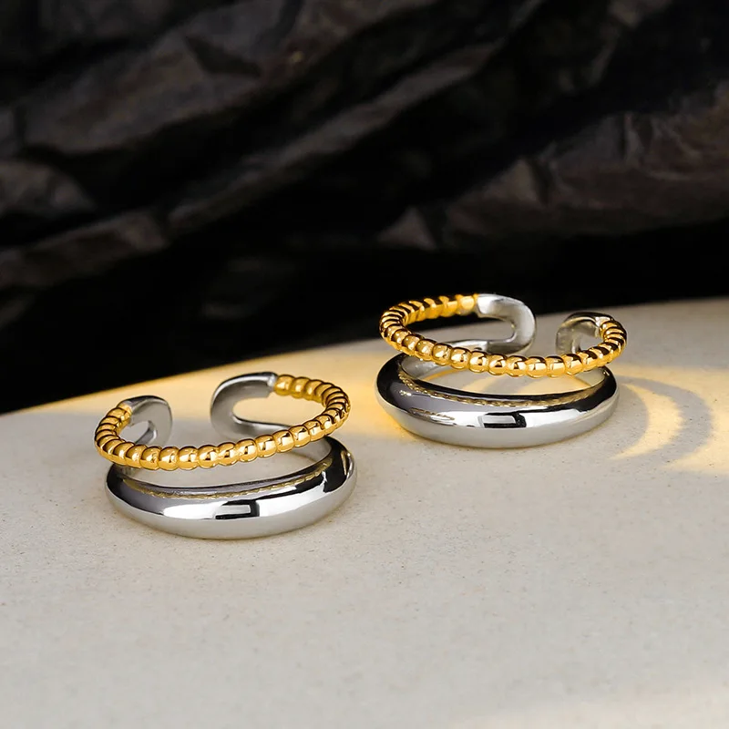 F.I.N.S 1PC Original Minimalist S925 Sterling Silver Double-Layer Clip Earring Geometric Color Contrast Earcuff Catilage Jewelry