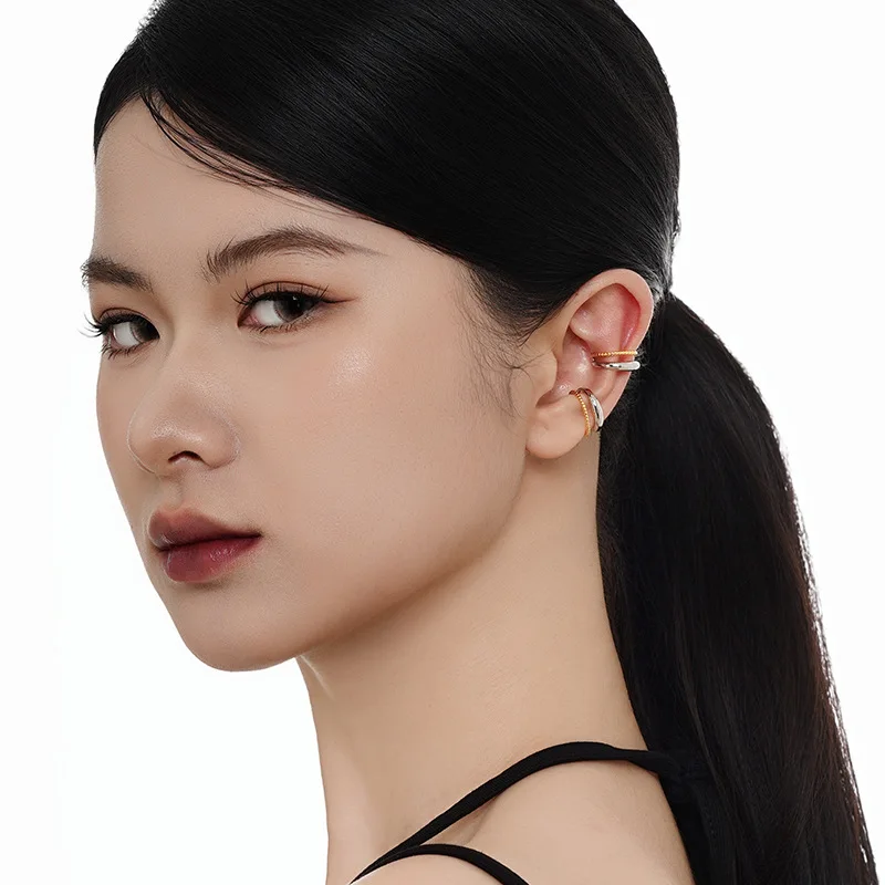 Jewel Type : F.I.N.S 1PC Original Minimalist S925 Sterling Silver Double-Layer Clip Earring Geometric Color Contrast Earcuff Catilage Jewelry