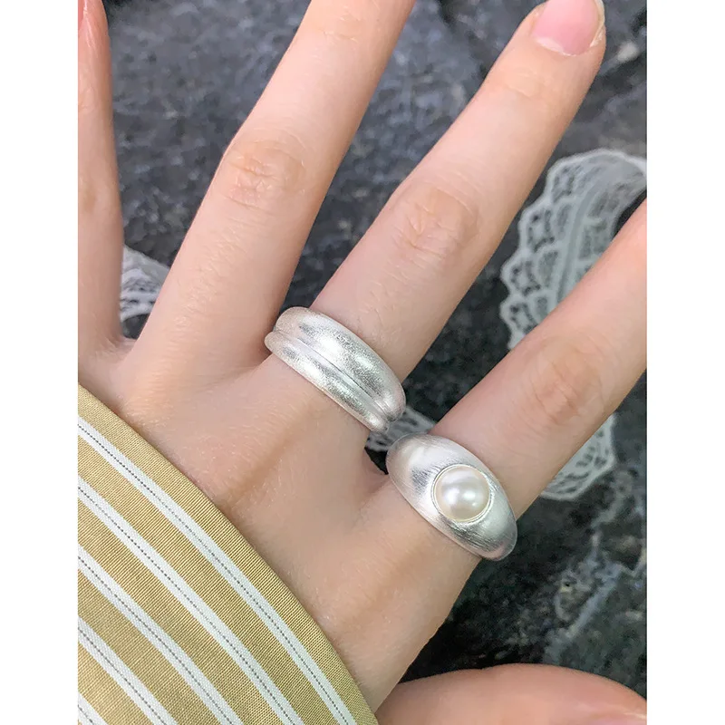 F.I.N.S Arc-Shaped Pearl S925 Sterling Silver Rings Brushed Matte Wide Open Adjustable Finger Fine Jewelry Women Accessories