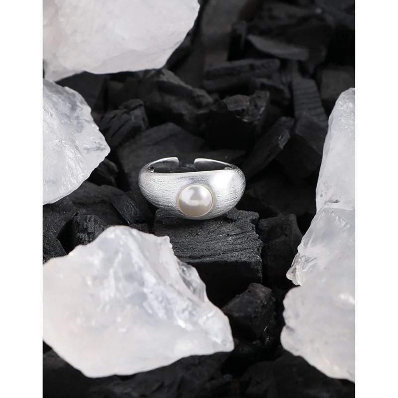 Jewel Type :?F.I.N.S Arc-Shaped Pearl S925 Sterling Silver Rings Brushed Matte Wide Open Adjustable Finger Fine Jewelry Women Accessories