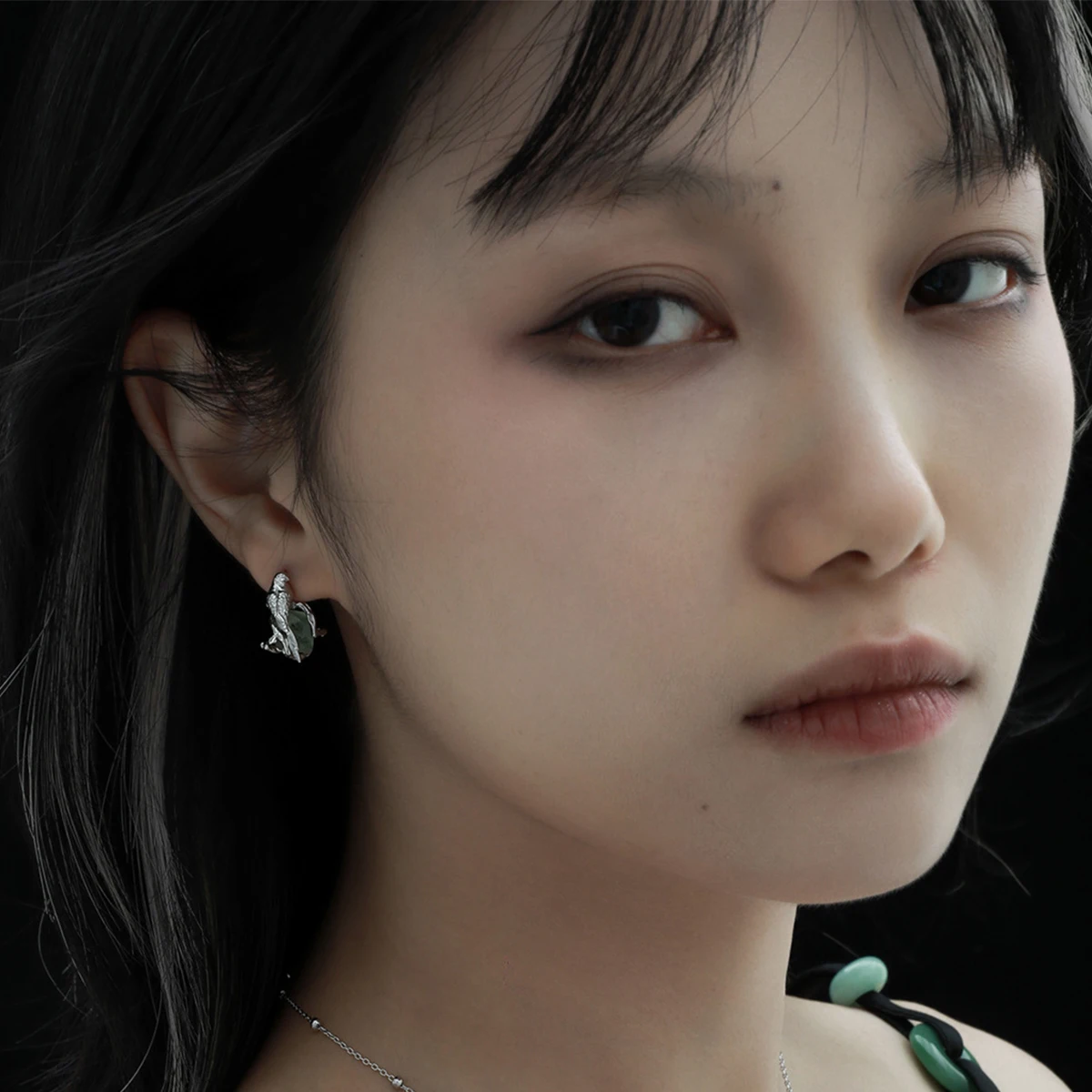 F.I.N.S Bird Fluorite S925 Sterling Silver Stud Earrings Delicate Irregular Stone Piercing Ear Fine Jewelry Prevent Allergy