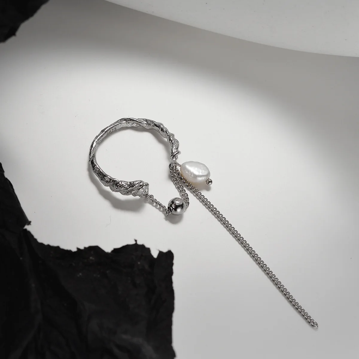 F.I.N.S CUSTOM 925 Sterling Silver Ring Opening Adjustable Chain Tassel Baroque Pearl Punk Rock Index Mid Finger Rings for Women