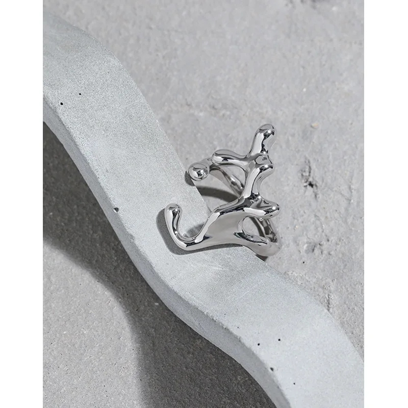 Jewel Type : F.I.N.S Glossy Irregular S925 Sterling Silver Open Ring Smooth Branch Resizable Wedding Rings for Women Men Finger Jewelry