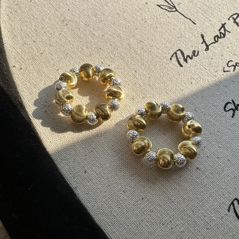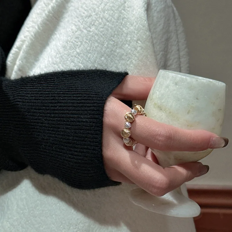 F.I.N.S Korean Pure 925 Sterling Silver Cat Eye Bead Ring Simple Glitter Beads Handmade Adjustable Fine Jewelry Anti-Allergic