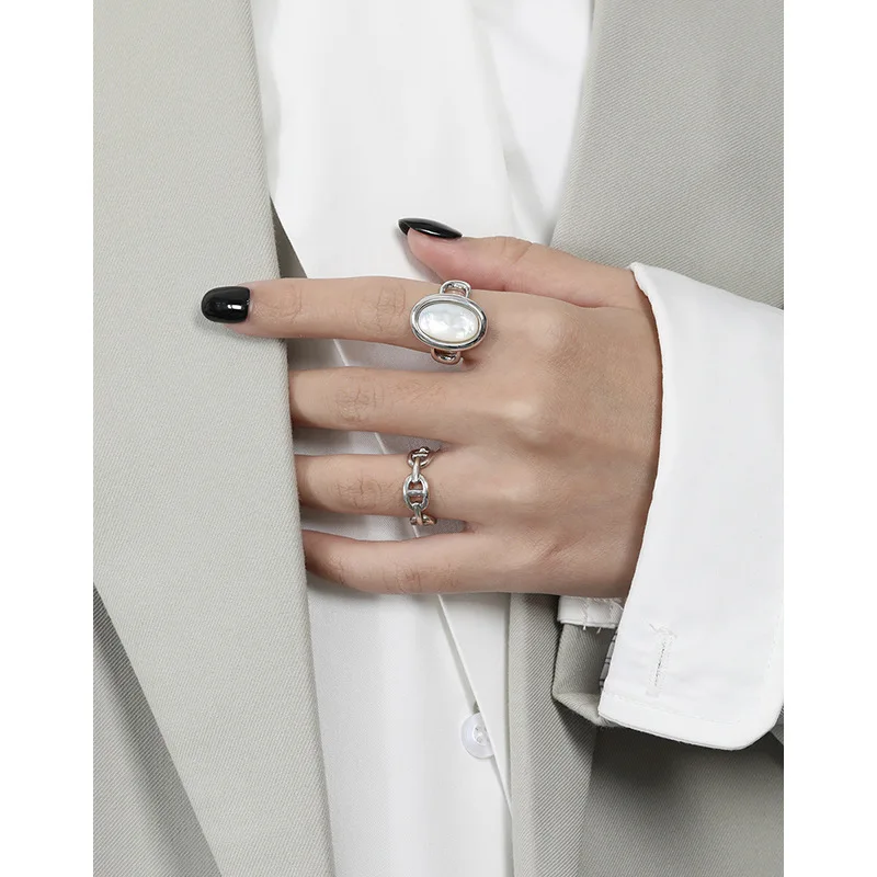 100% S925 Sterling Silver imple Geometric Oval Nat...