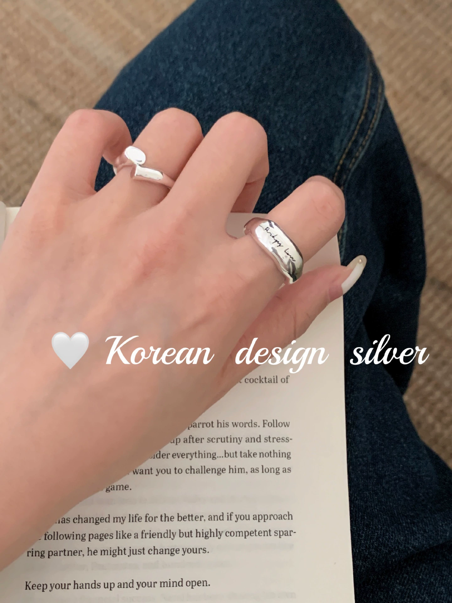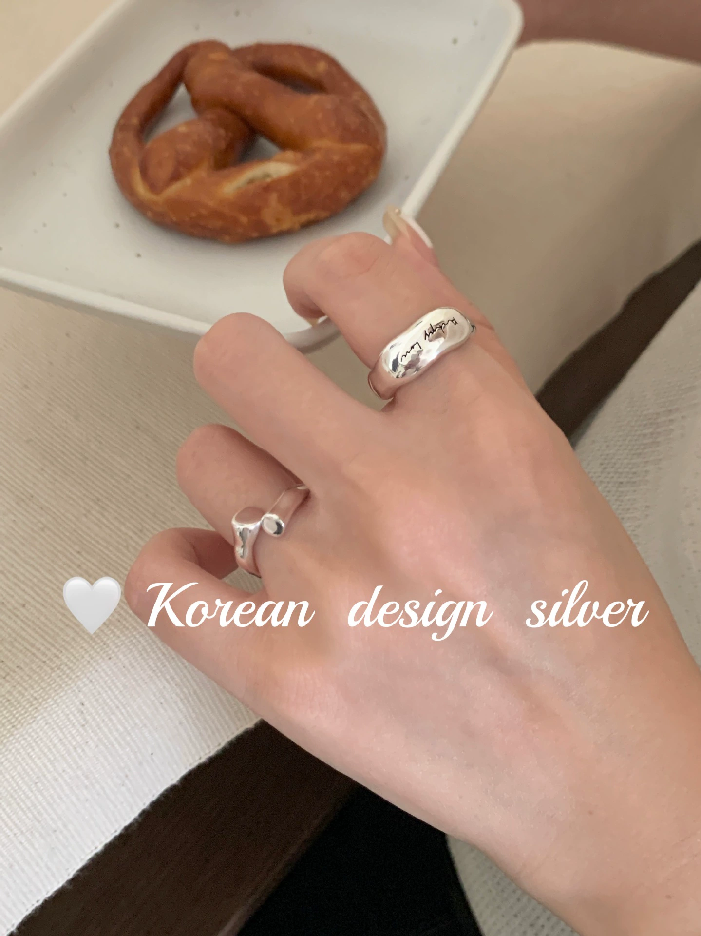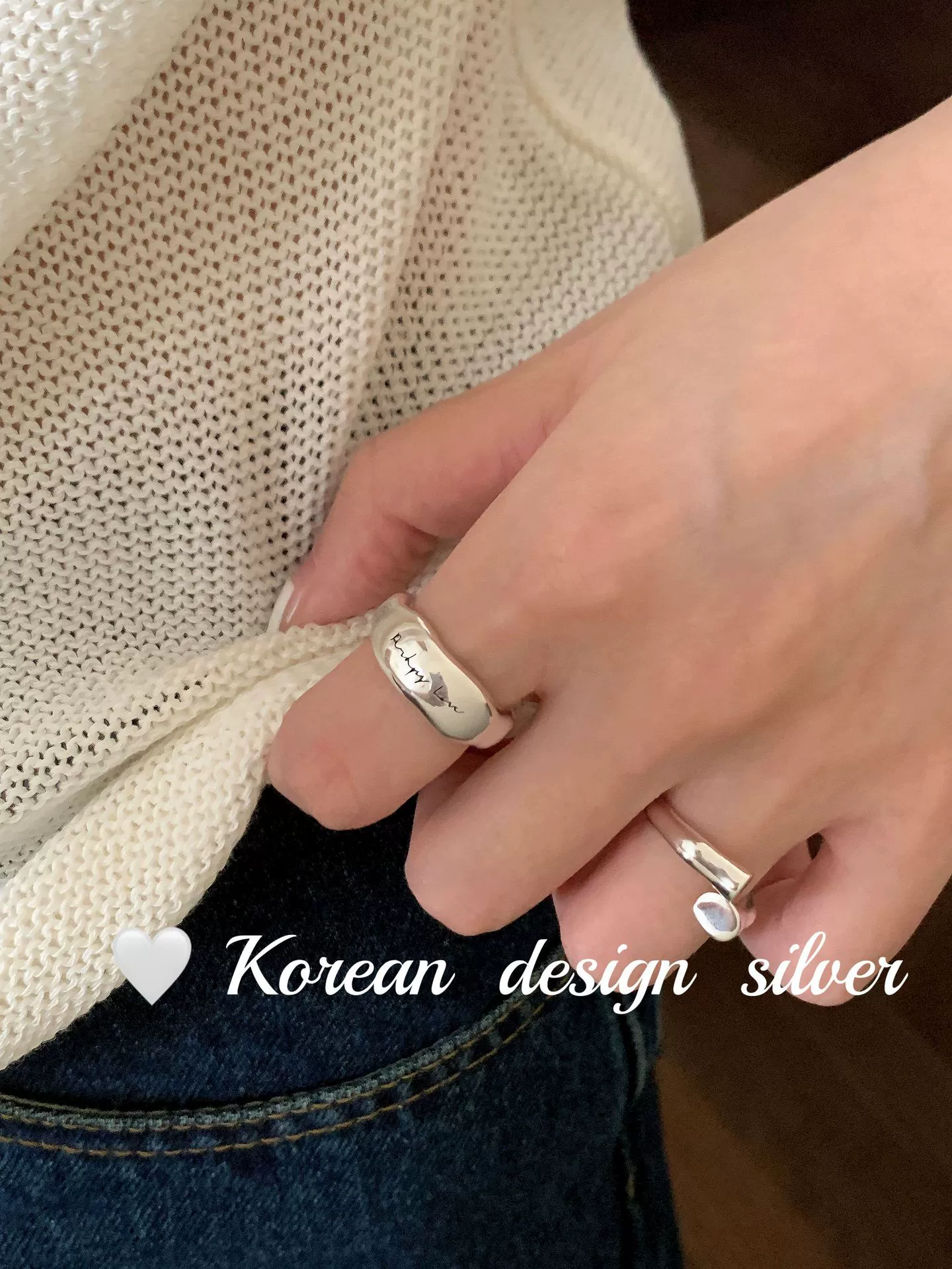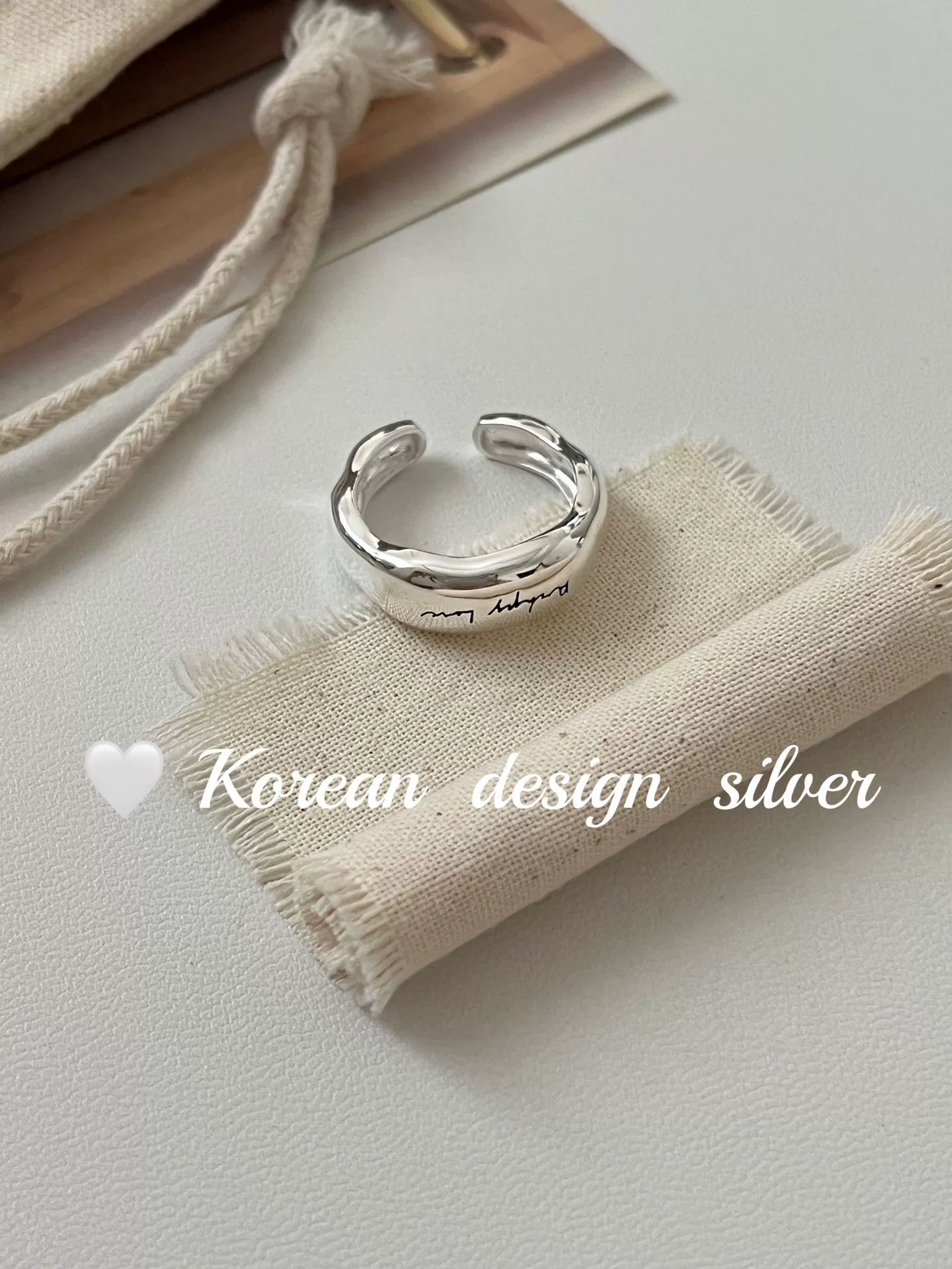Korean high-end niche design ring S925 sterling silver wide version English irregular glossy ins style ring for women