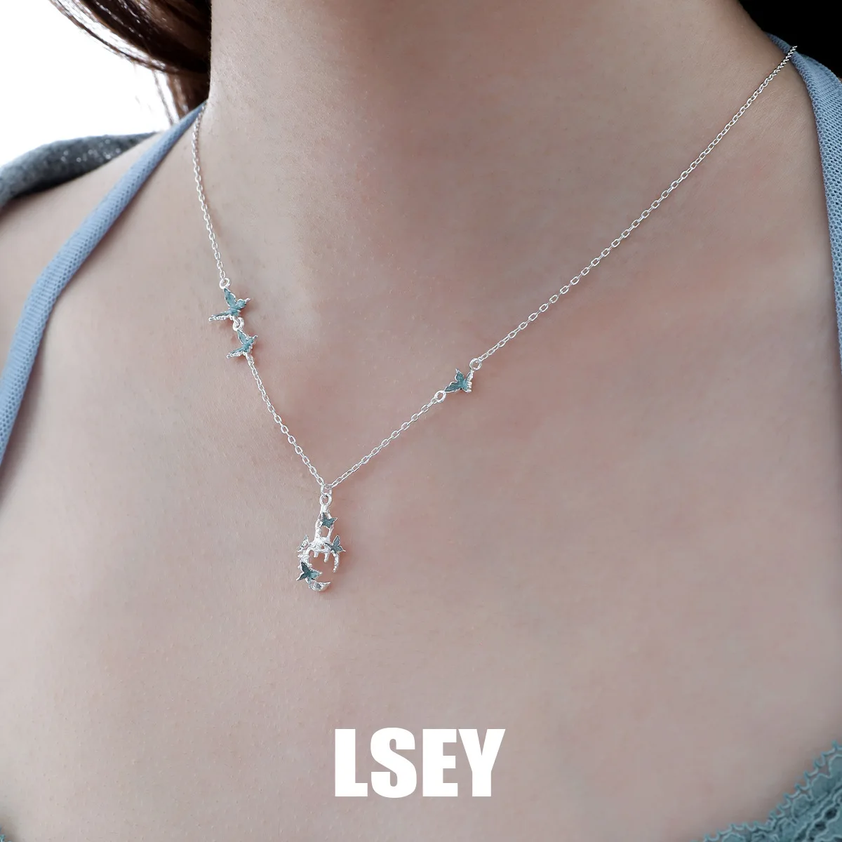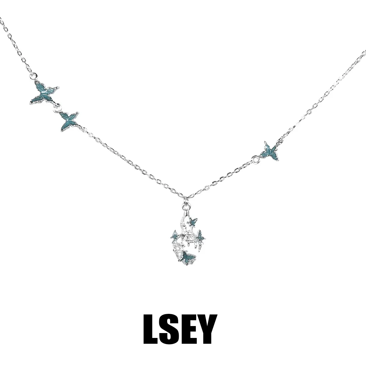 MLKENLY Broken gourd butterfly necklace original new Chinese style drop glazed collarbone chain niche accessory