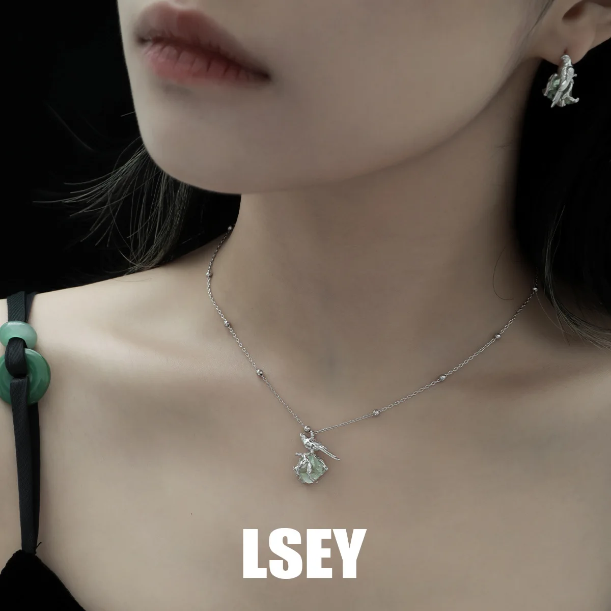MLKENLY Flybird Fluorite Necklace Cold Wind S925 Pure Silver Premium Necklace Women’s Silver Jewelry Wholesale