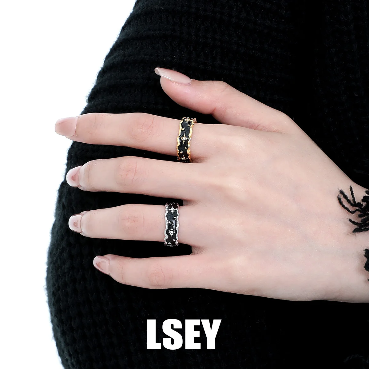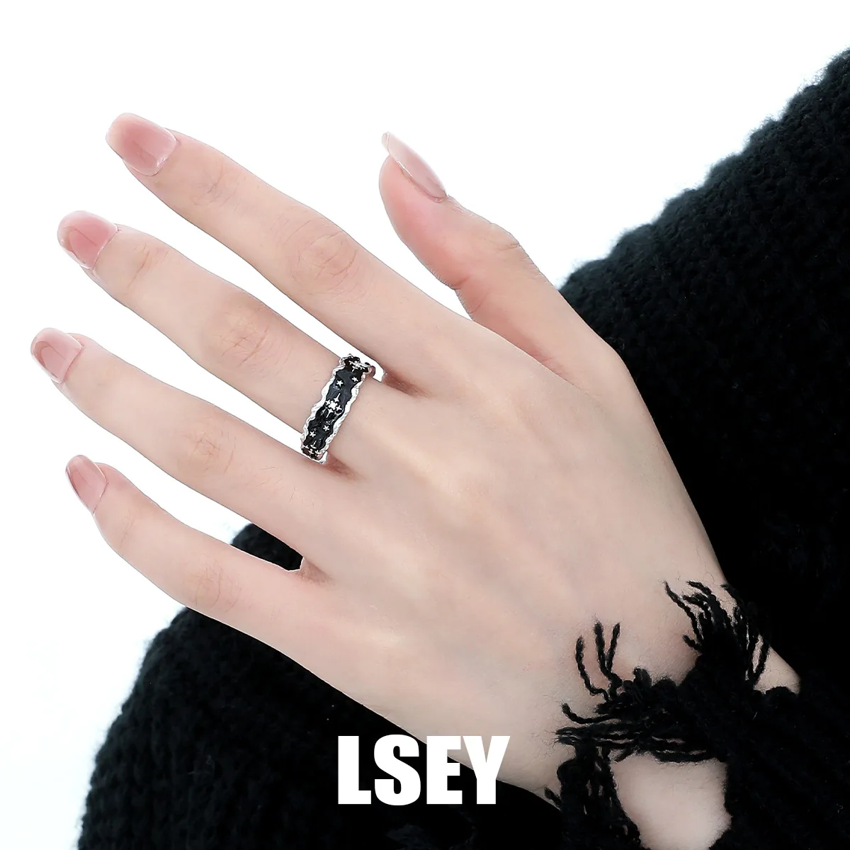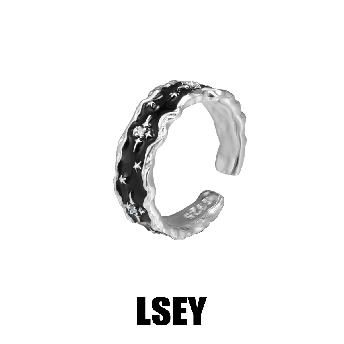 MLKENLY S925 sterling silver Black Gold Star Wide Opening Adjustable Rings for Women Fine Jewelry Minimalist Accessories