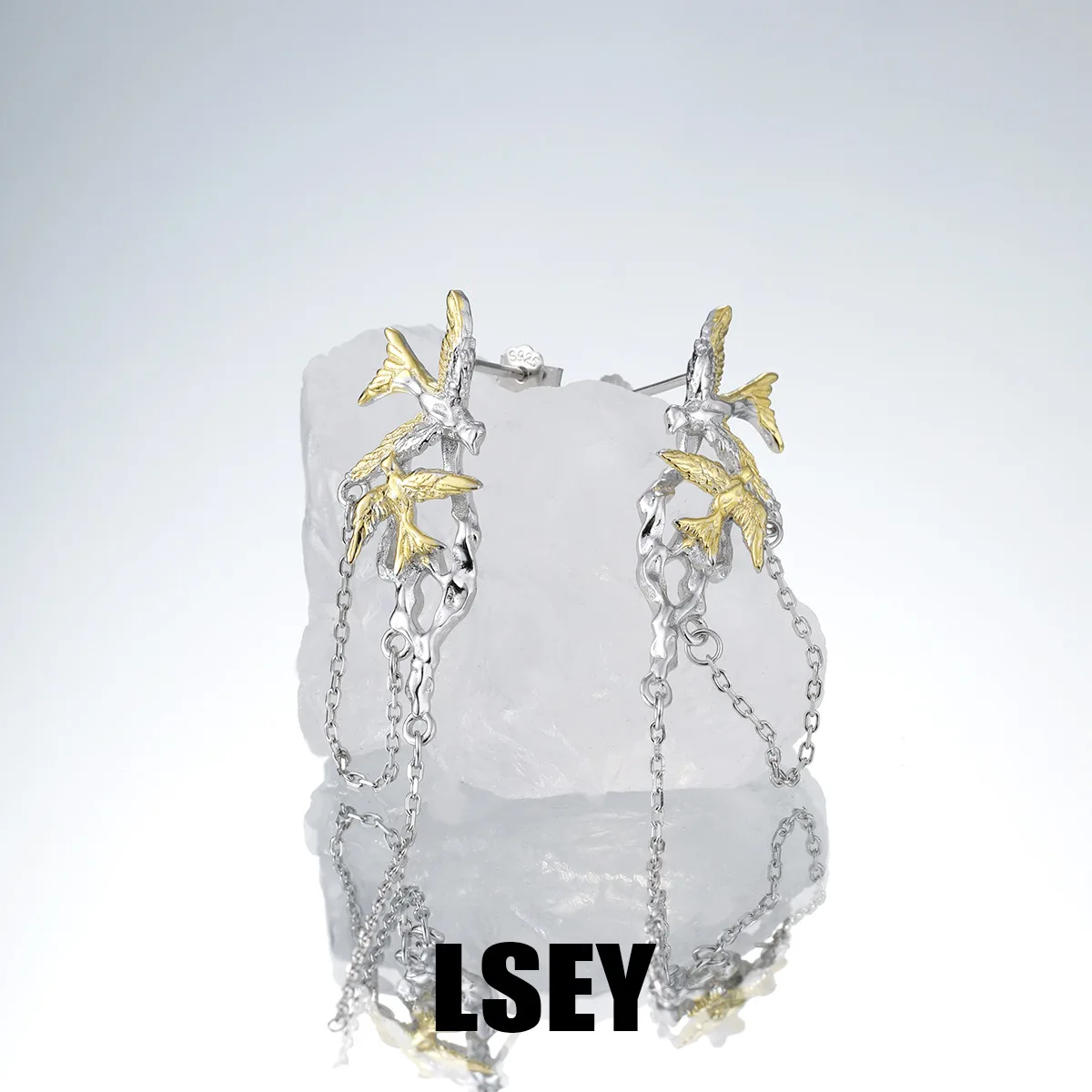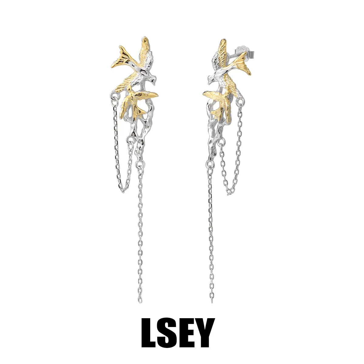 MLKENLY S925 sterling silver Flying bird dual color tassel earrings cold wind For Women Fashion Accessories Wholesale