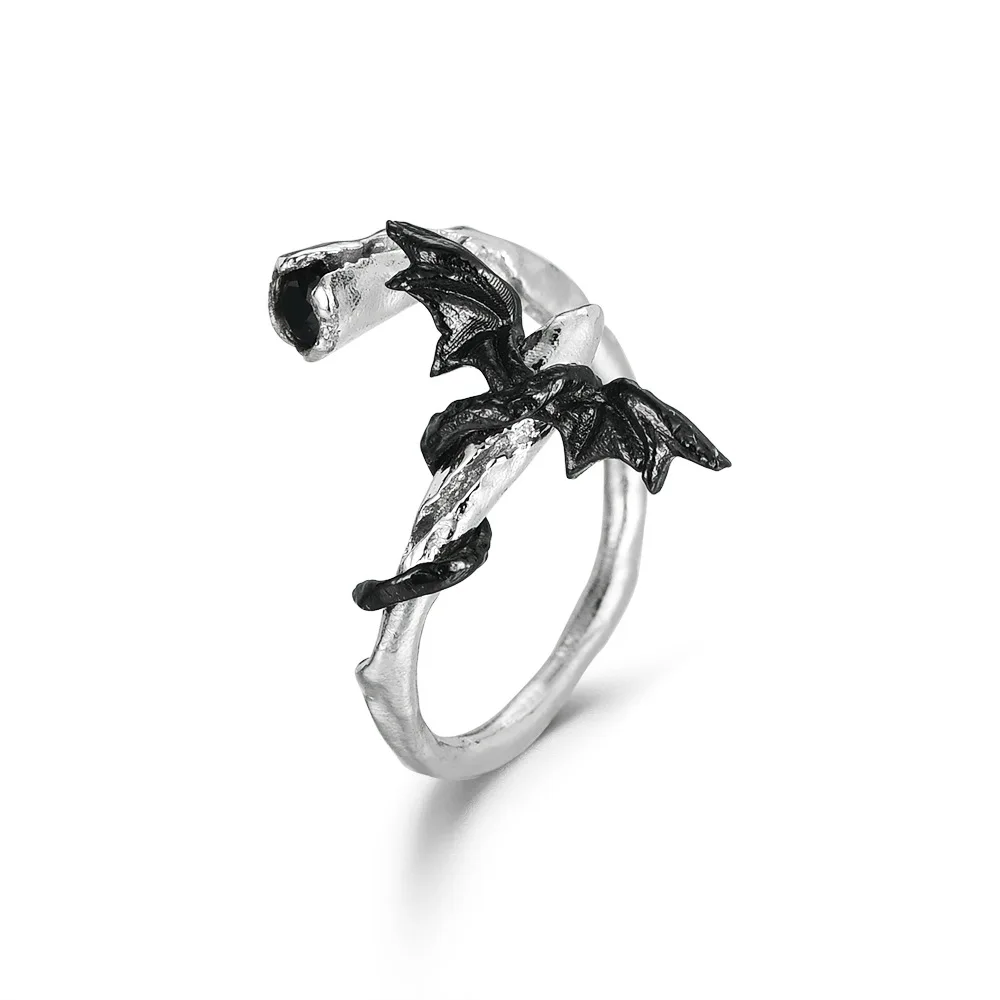 MLKENLY S925 sterling silver Gun Black Two Color Original Design Series Bat Niche Dark Subculture Ring Woman
