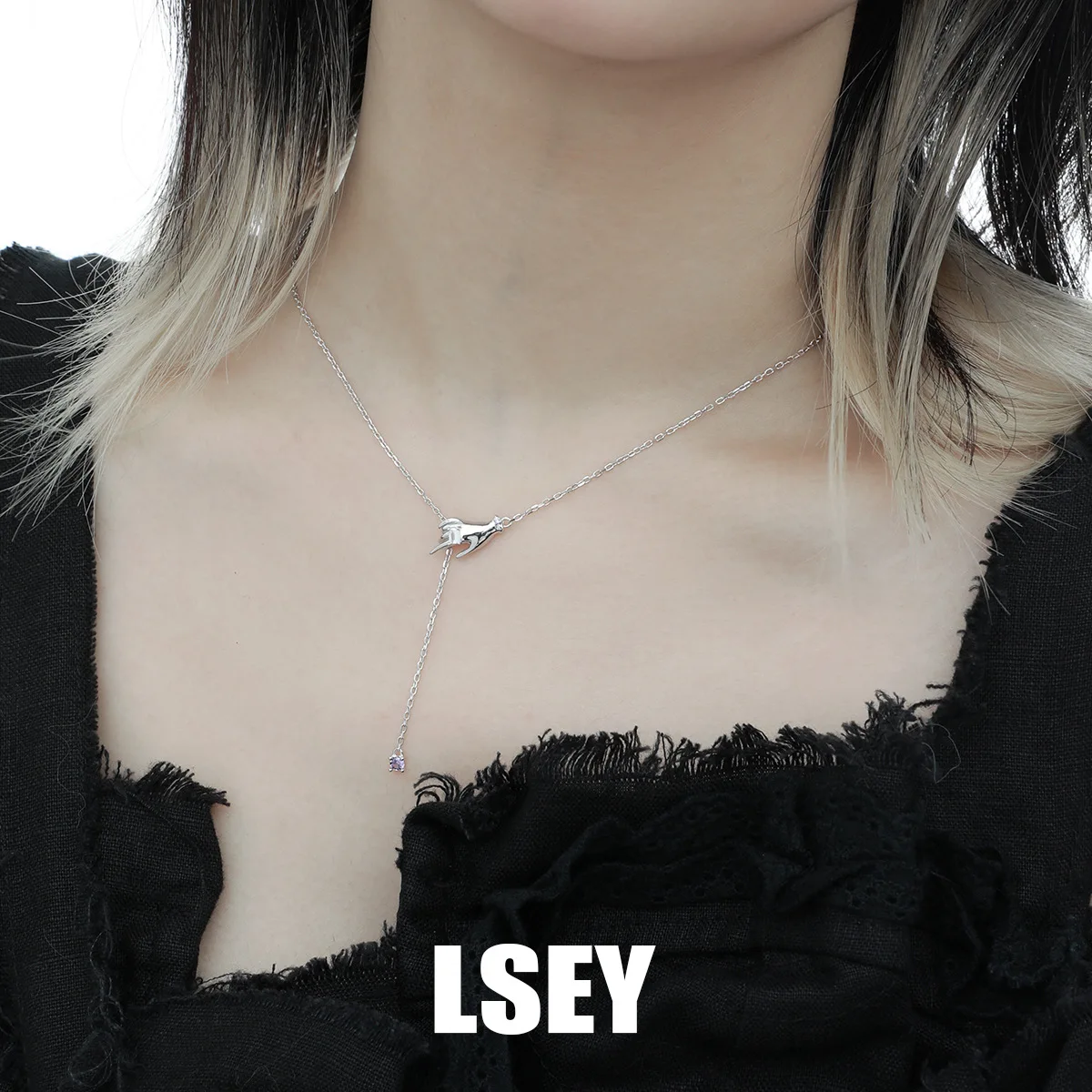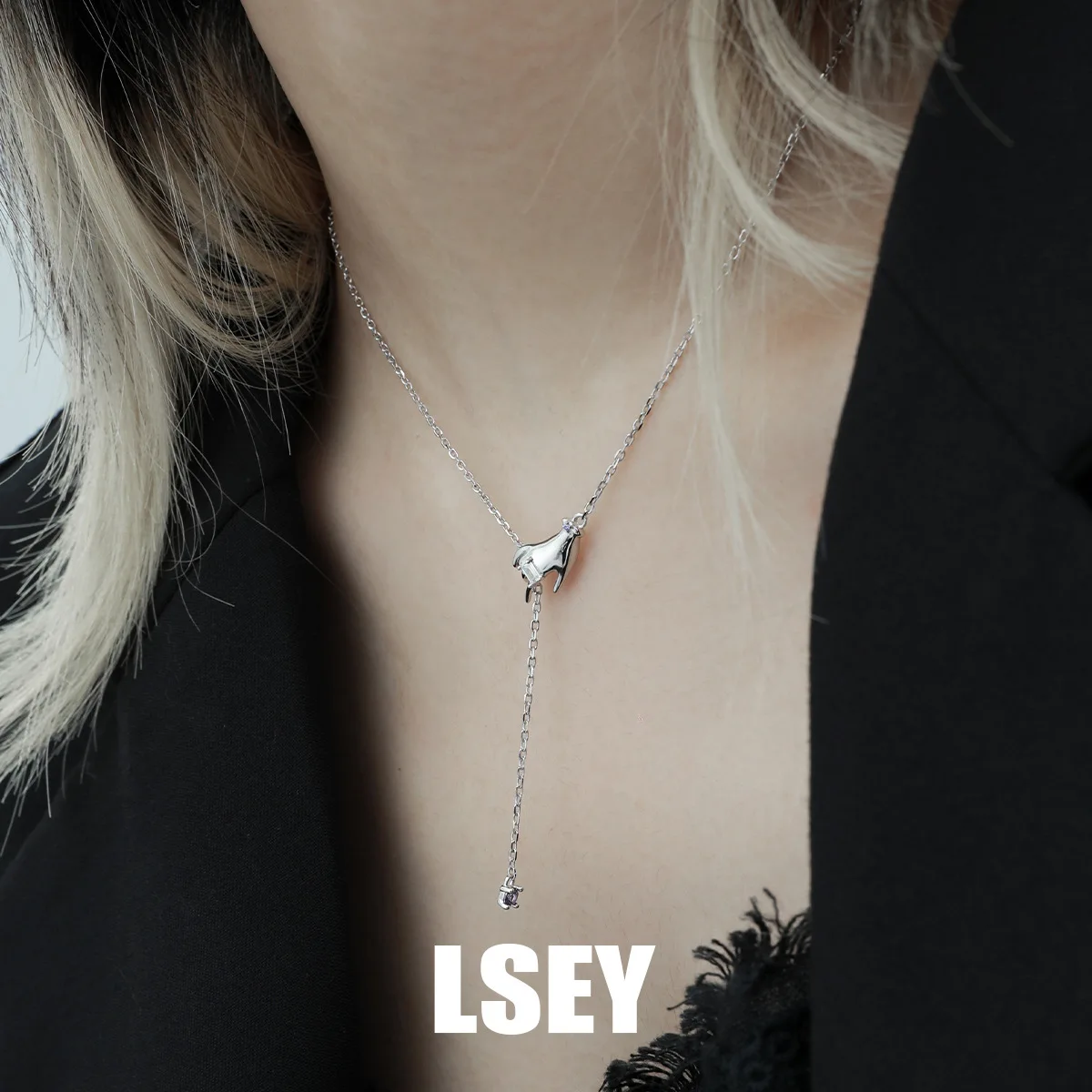 MLKENLY S925 Sterling Silver Hand Pendant Necklace for Women Micro Paved Rhinestone Clavicle Chains Jewelry Gift