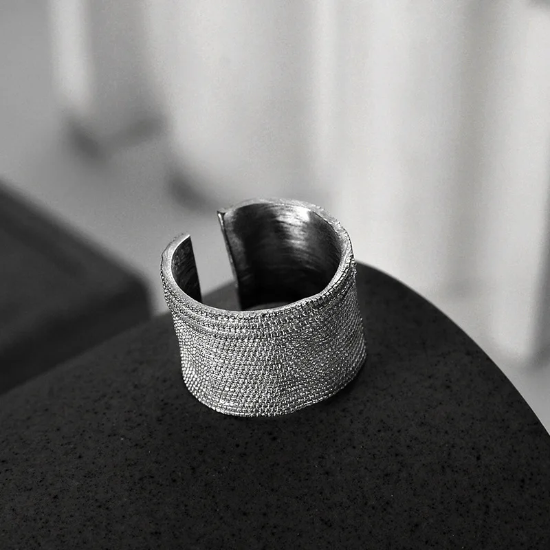 MLKENLY S925 sterling silver Madoka dot ring, female ins, cool style, matte brushed index finger ring
