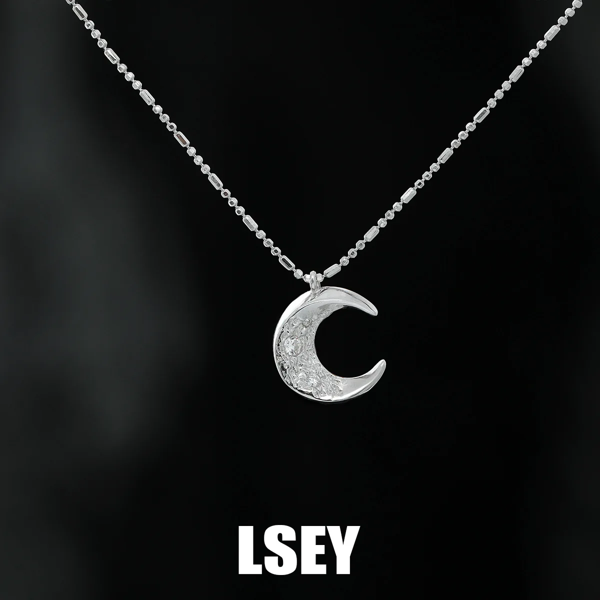 MLKENLY S925 Sterling Silver Moon White Zirconia Texture Necklace Cold Wind Astronaut Pendant – Trendy Celestial Jewelry Gift fo