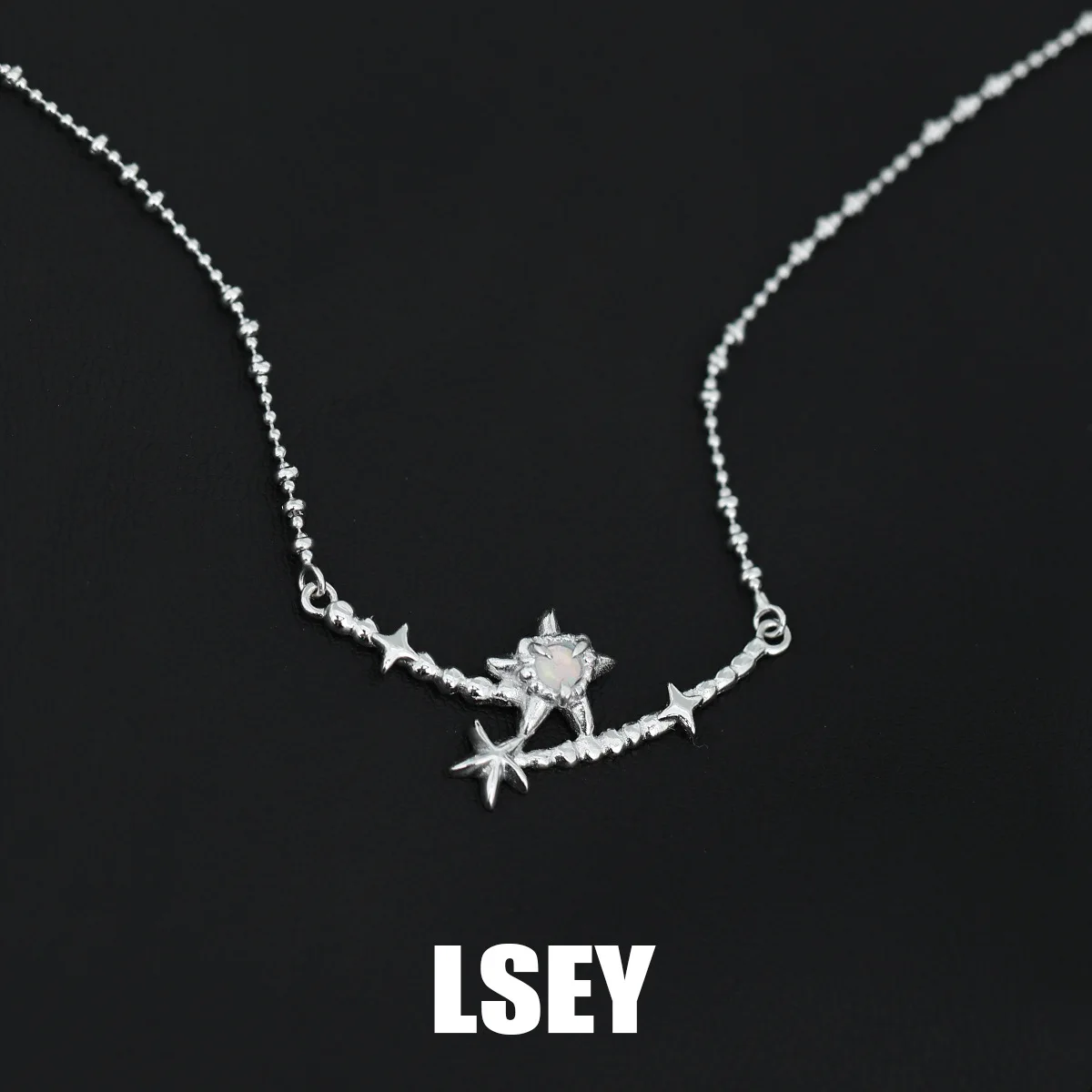 MLKENLY S925 sterling silver Opal Star Pendant Chain Non-fading summer choker jewelry necklace Women’s Accessories ornament