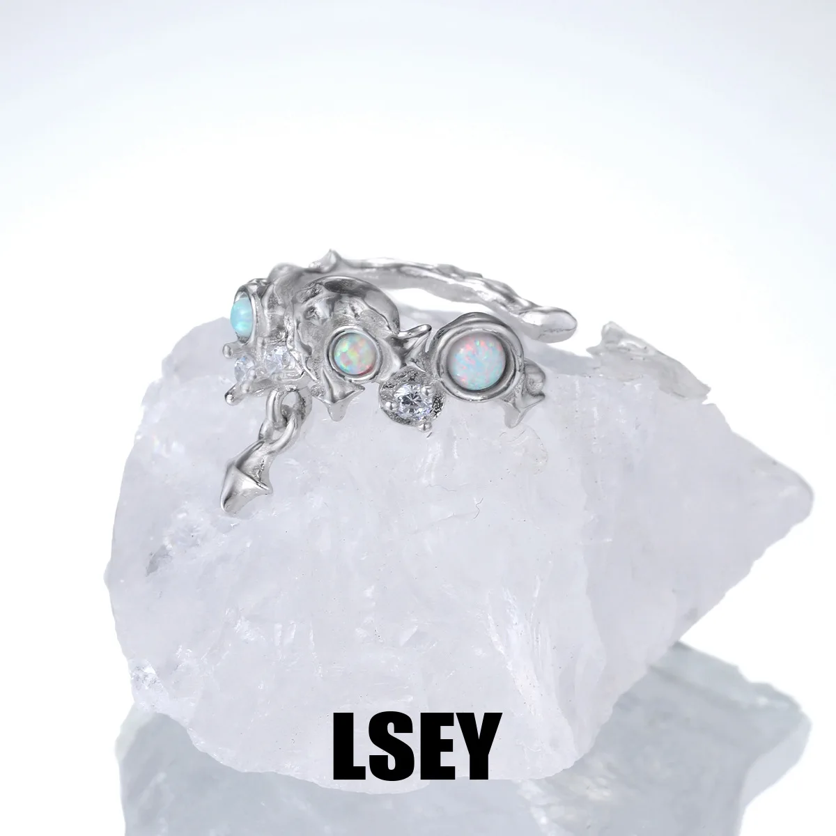 MLKENLY S925 sterling silver Star Dangle Earrings for Women Sweet Pink Opal Long Tassel Chain Ear Cuffs Accessories Fine Jewelry