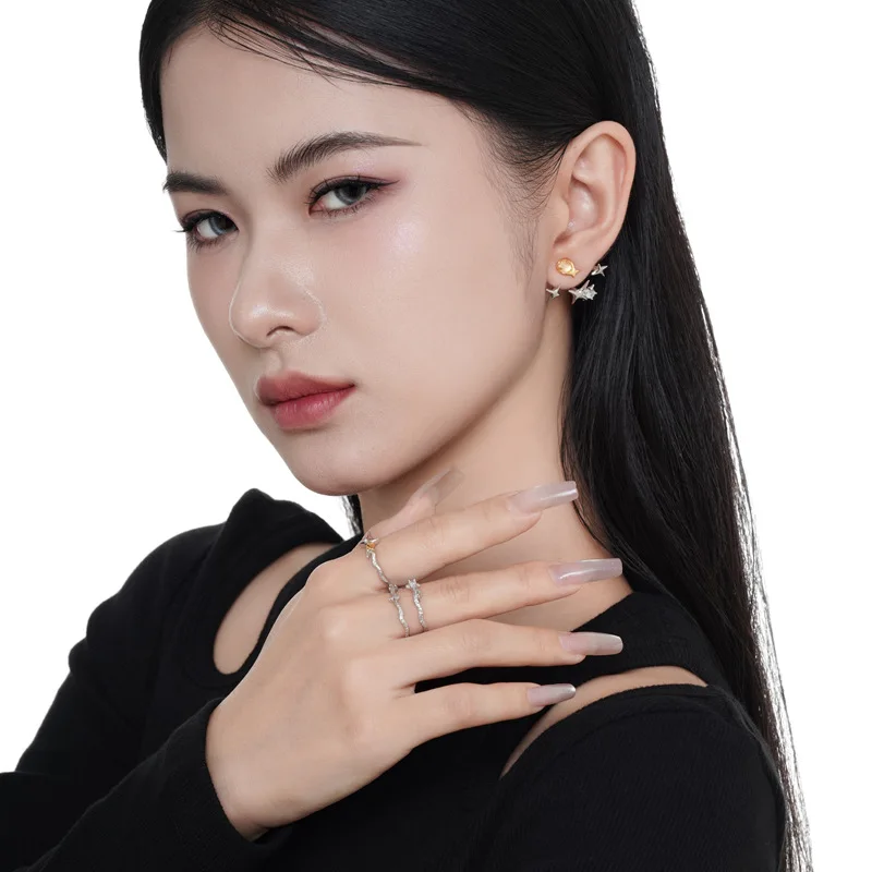 MLKENLY S925 sterling silver star ring for women, double layered simple, fashionable and personalized winding ring