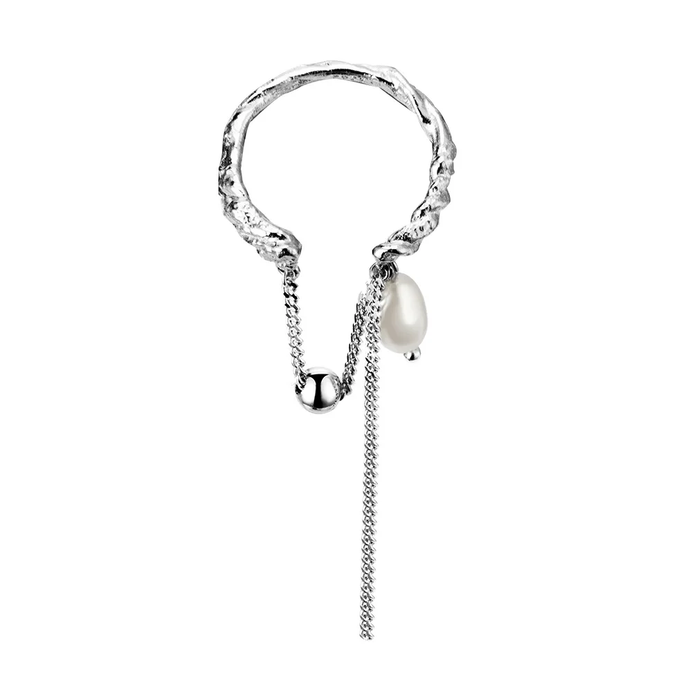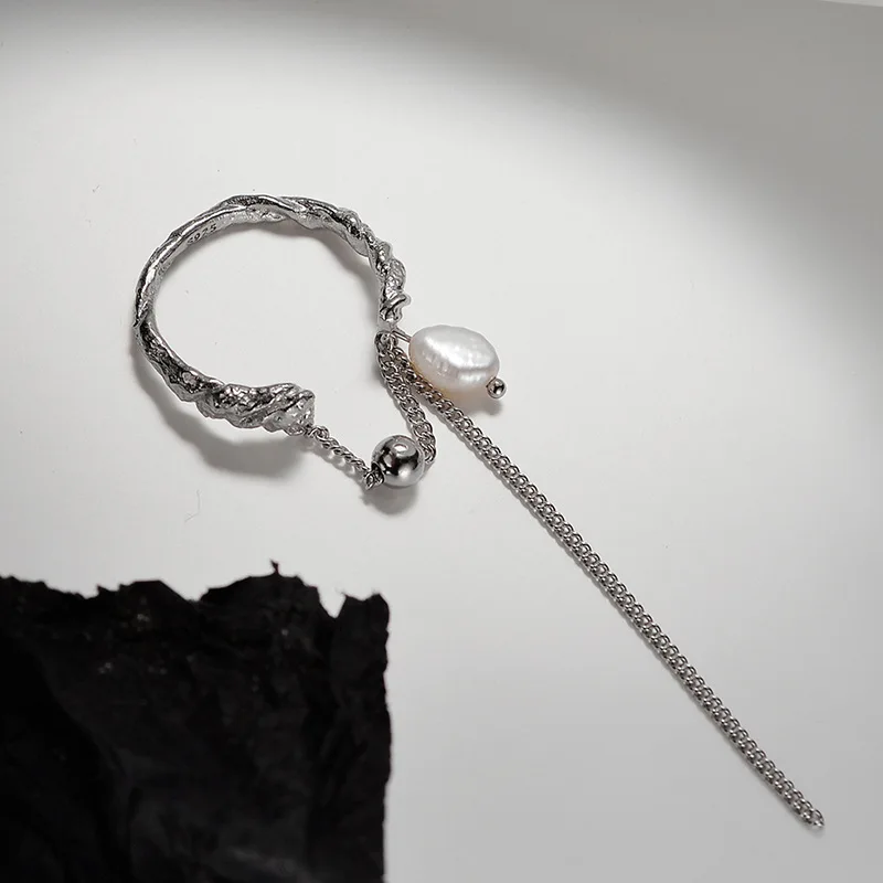 MLKENLY S925 Sterling Silver Texture Baroque Pearl Ring Female Ins Open tassel Earrings