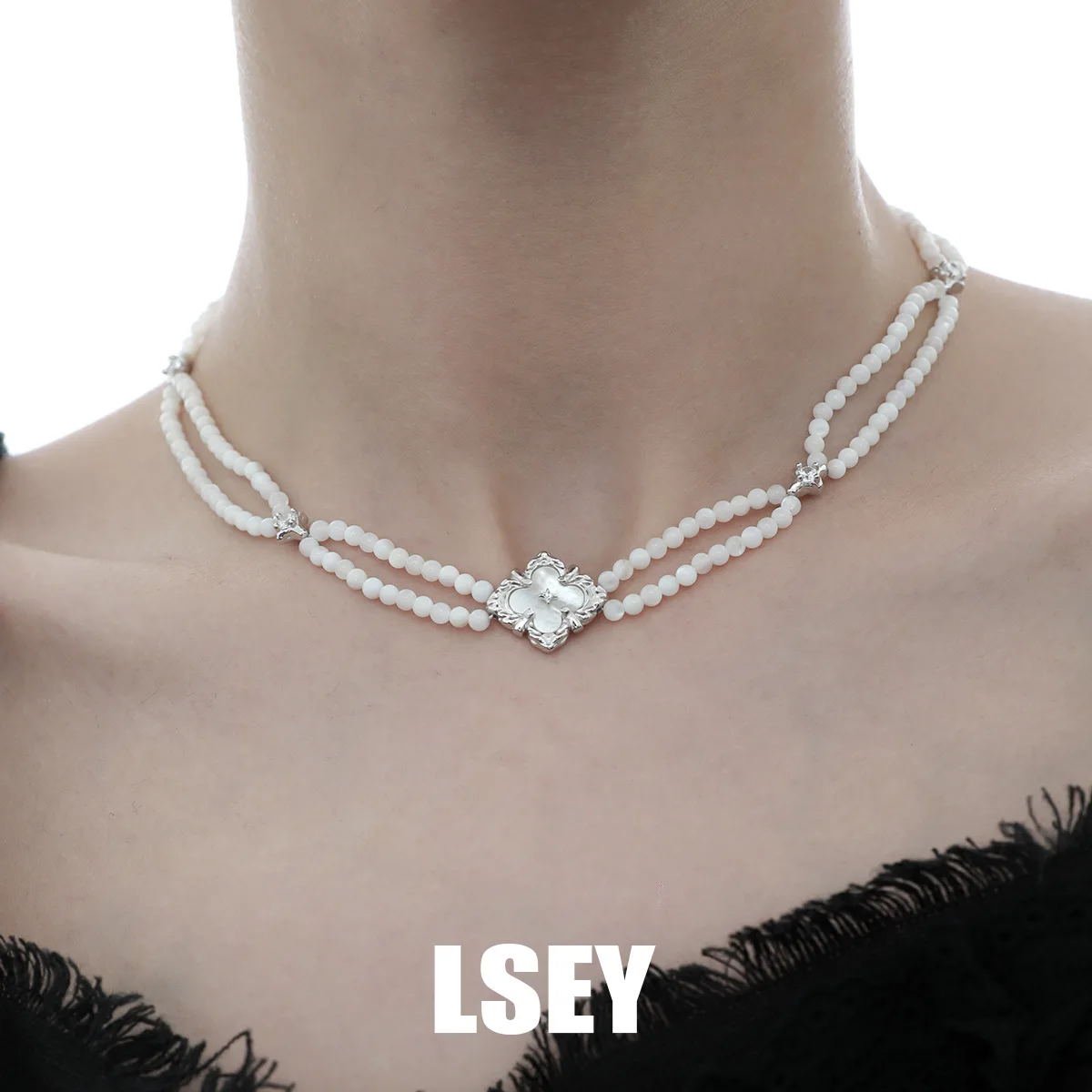 MLKENLY S925 Sterling Silver White shell flower double-layer necklace For Women Bohemia Elegant Jewelry Gifts Wholesale