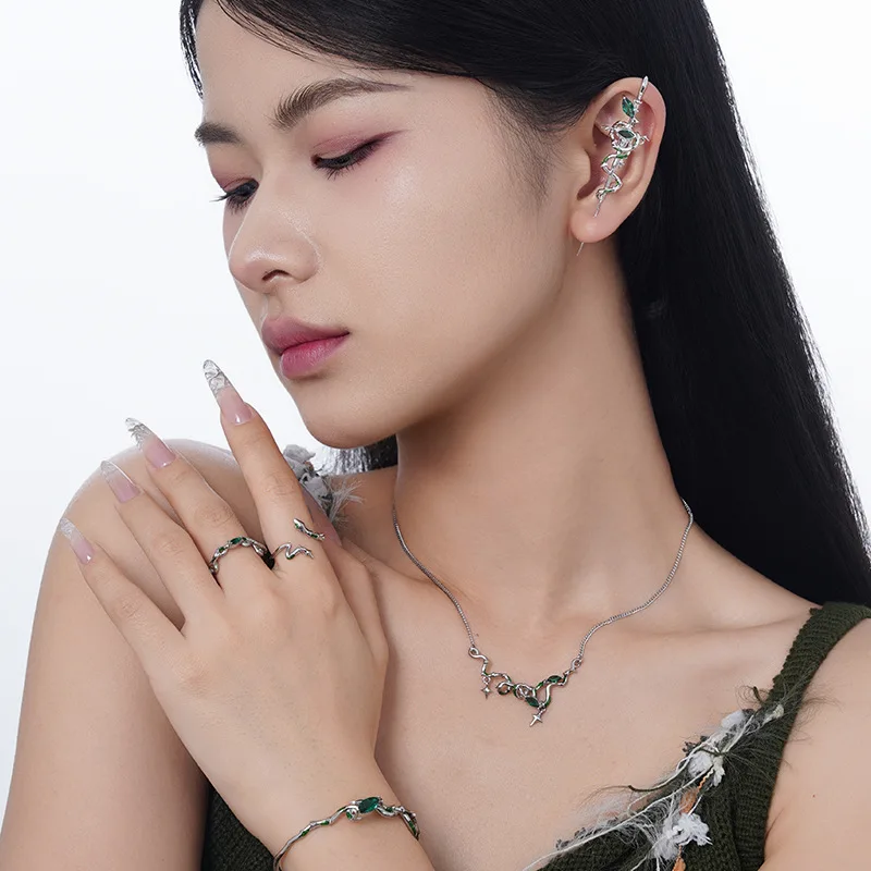 MLKNELY S925 sterling silver Bamboo Snake Piercing Ear Needles Female Exaggerated Fashionable Ear Nails