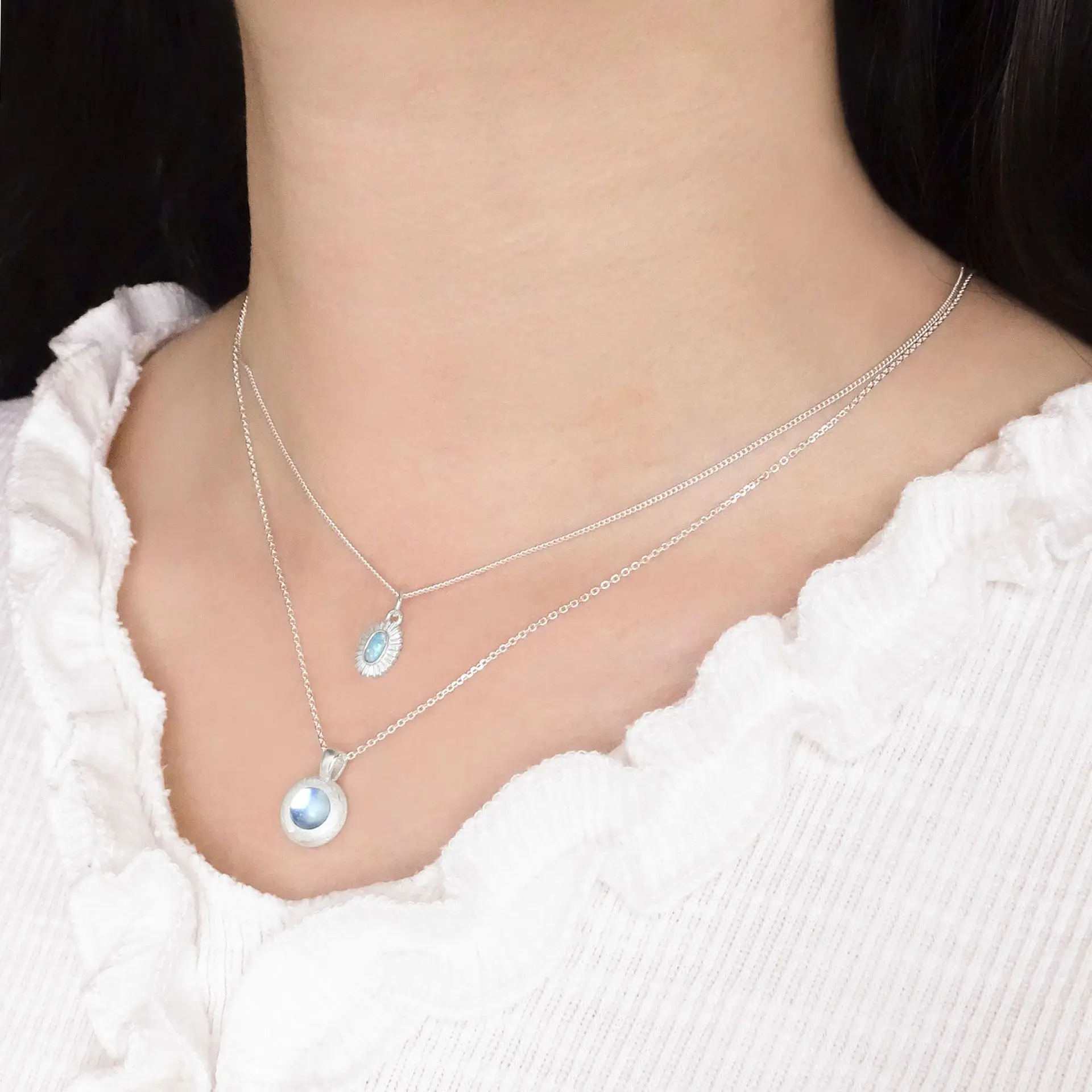 Natural Aquamarine Pendant Necklace S925 Sterling Silver Brushed Matte Finish Korean INS Style Dainty Choker for Women