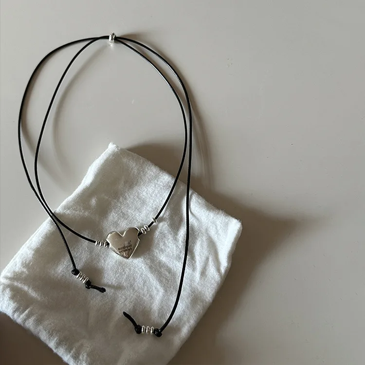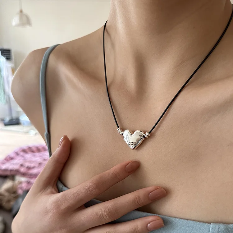 Pull-out Leather Metal Love Necklace Female Design Sense Niche Retro Personality Simple Versatile Neck Chain Collarbone Chain