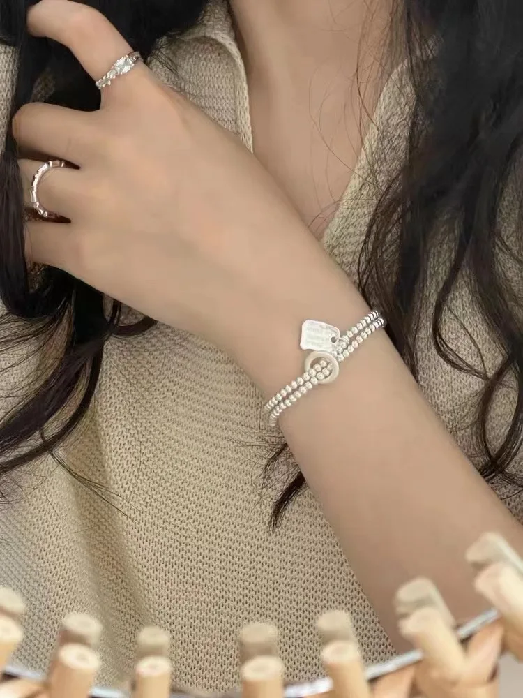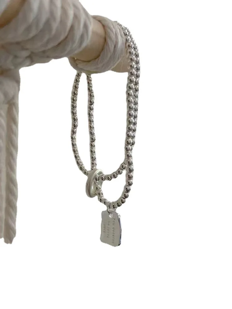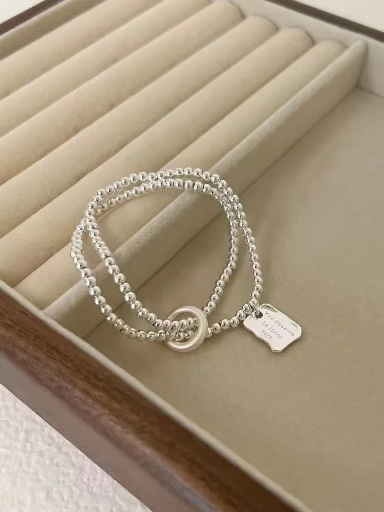 S25 Sterling Silver Support Detection You Deserve To Be Loved Double-layer Silver Bead Letter Brand Safety Buckle Bracelet