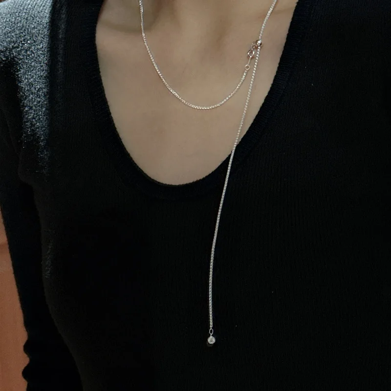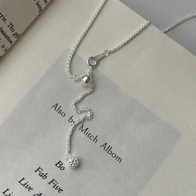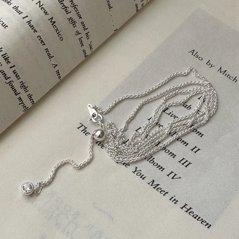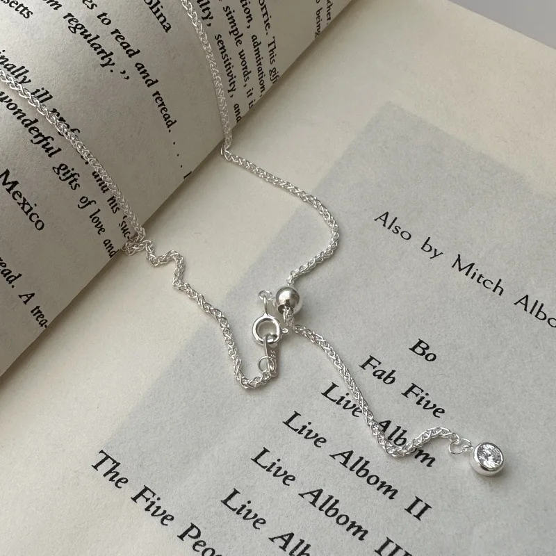 S925 Silver Spanish Niche Design Sense Round Chopin Retro Simple Necklace Fashion Personality Single Zircon Collarbone Chain