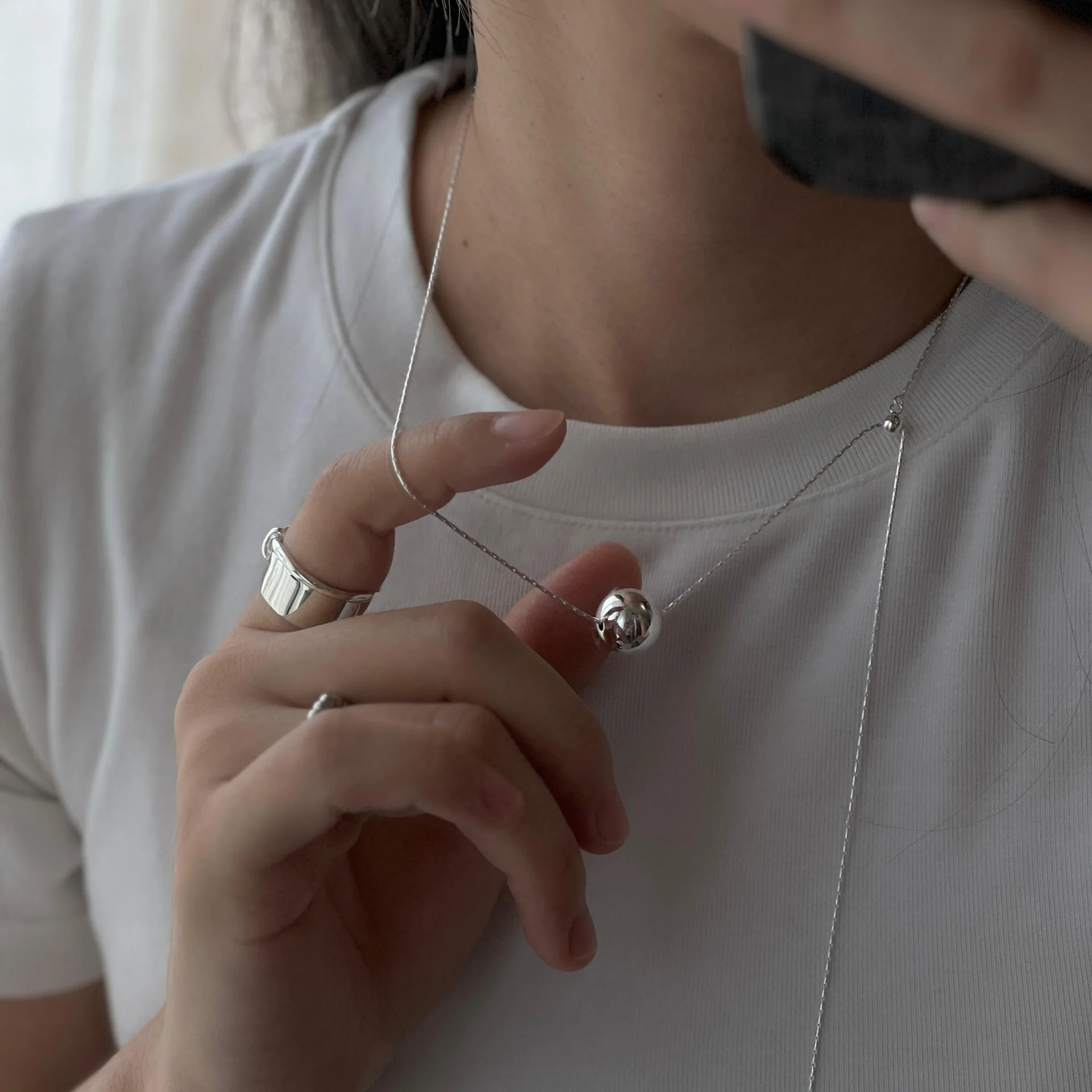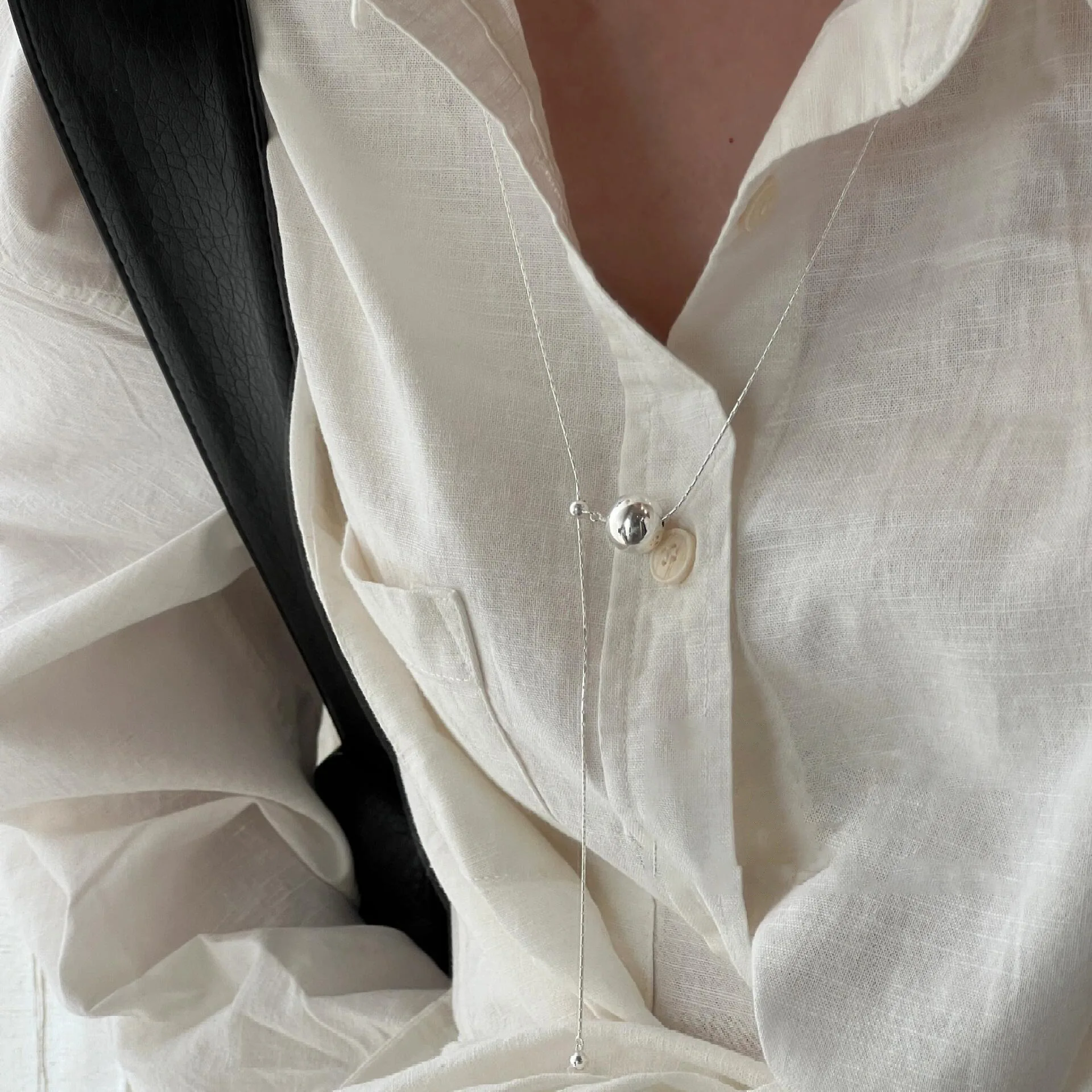 S925 Sterling Silver Bead Passepartout Long Necklace Female Korean Simple Ins Premium Niche Design Sweater Chain