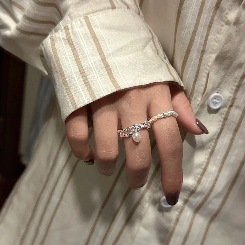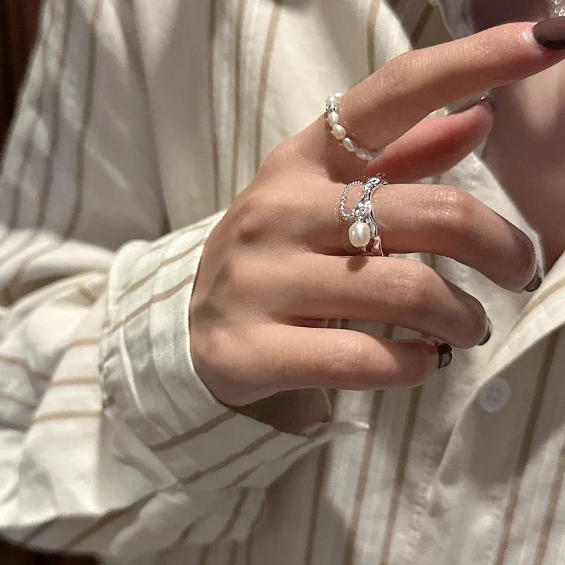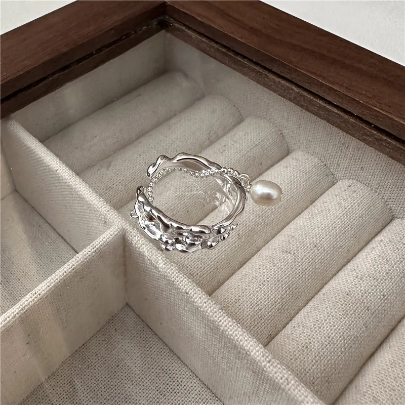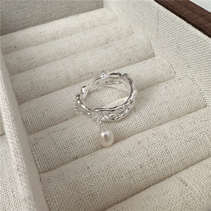 S925 Sterling Silver Fashion pearl ring texture, n...