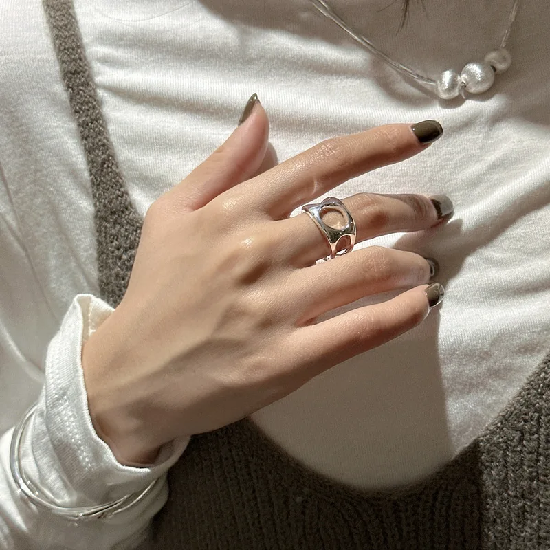 S925 Sterling Silver Heavy Industry Openwork Niche Design Ring Fashion Personality Simple Texture Ring Wholesale