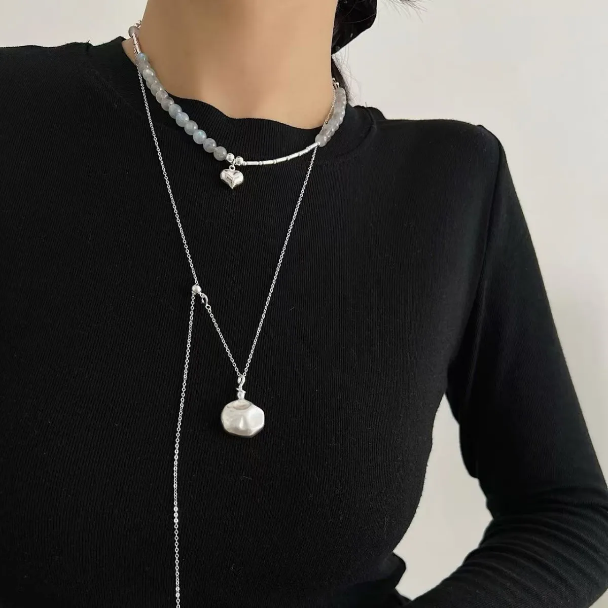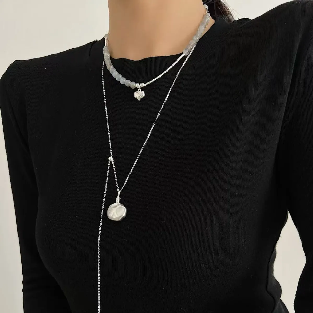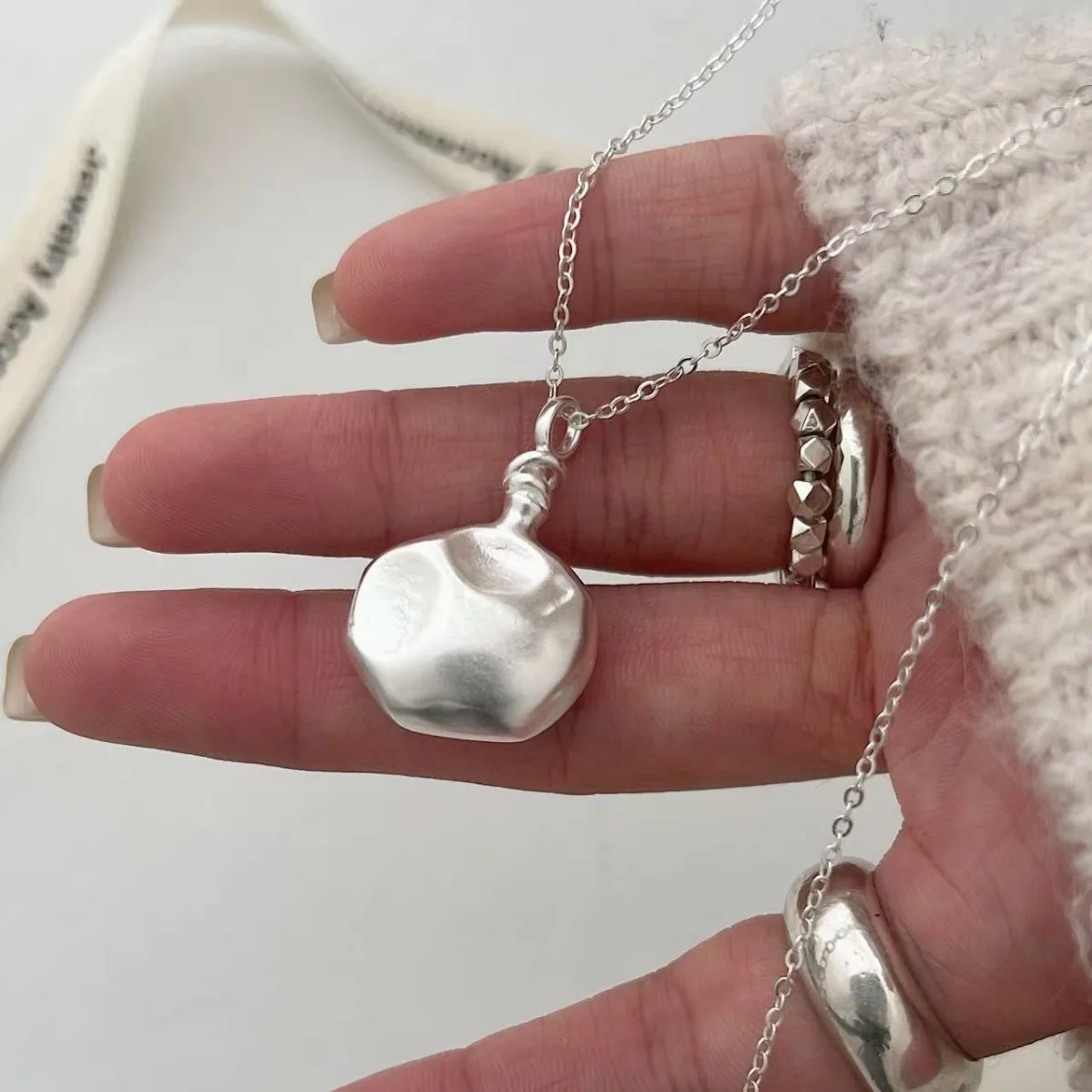 S925 Sterling Silver Irregular Hammer Wine Bottle Sweater Chain Women’s Niche Design High-end Japanese Ns New Necklace