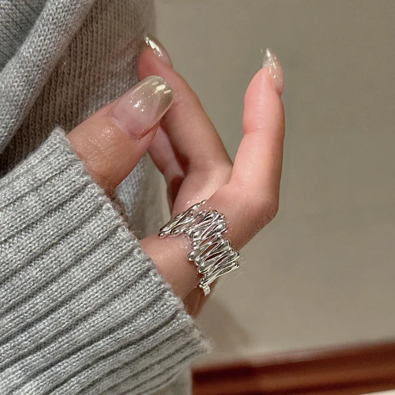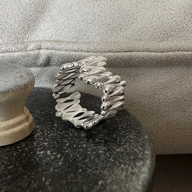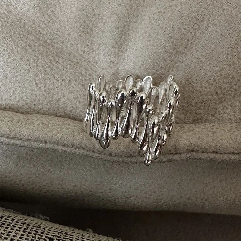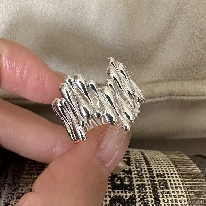 S925 Sterling Silver Japanese Niche Design Feeling Water Drop Ring Blogger Retro Simple Fashion Ring Silver Jewelry Wholesale