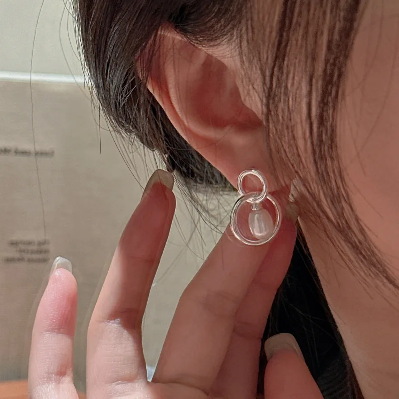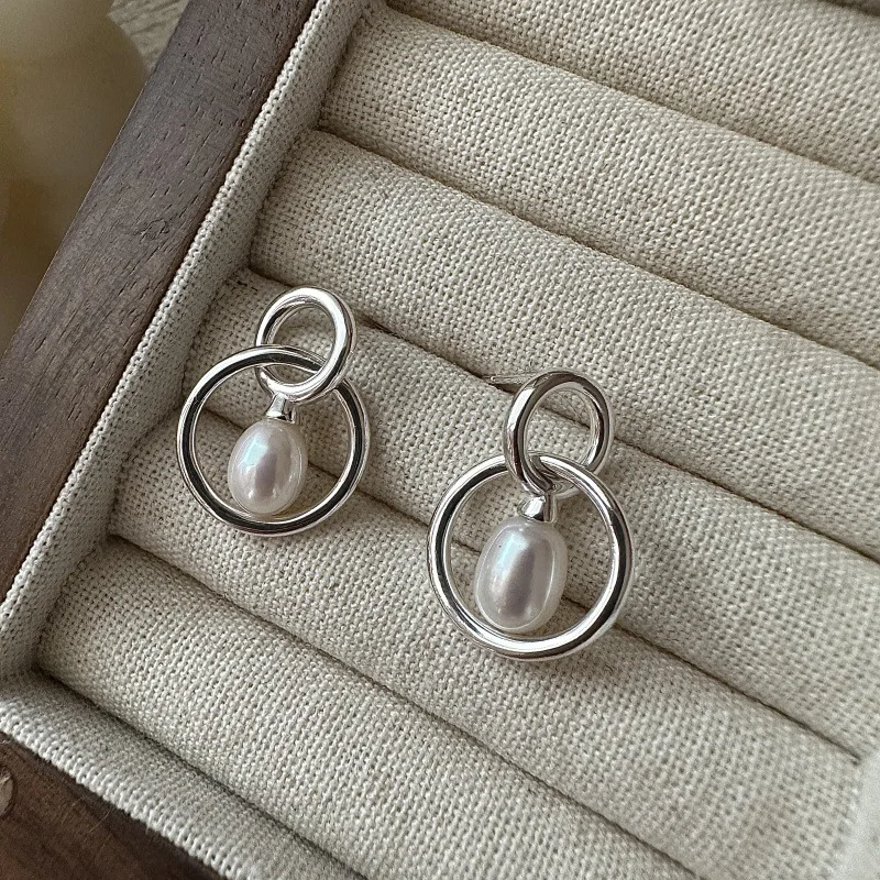 S925 Sterling Silver Korean Niche Design Sense Retro Water Drop Pearl Earrings Spanish Personalized Ear Jewelry Wholesale