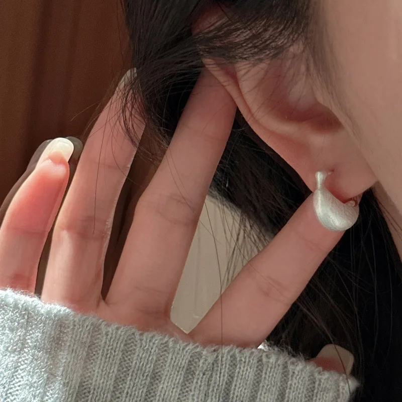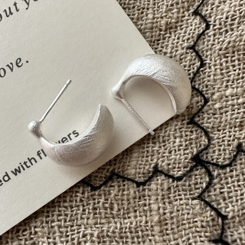 S925 Sterling Silver Korean Version Matte Retro Earrings Wind Simple and Fashionable Arc Ear Jewelry Silver Jewelry Wholesale