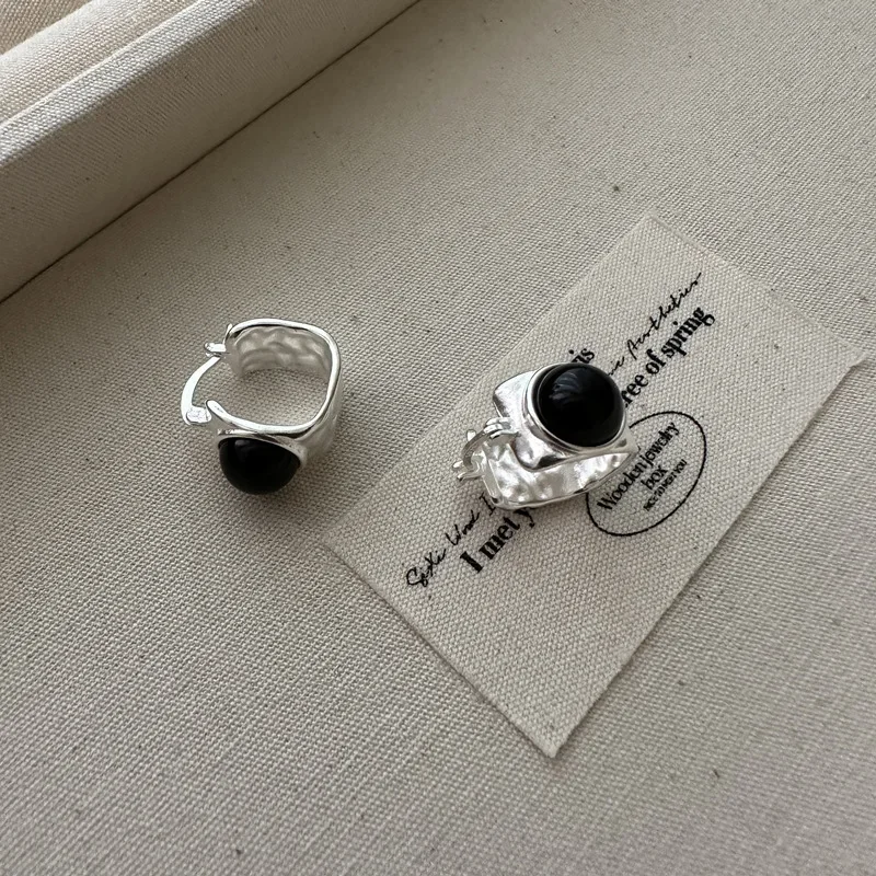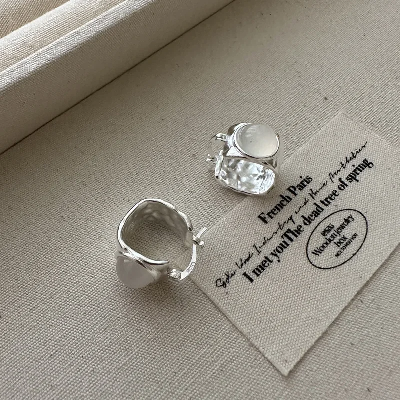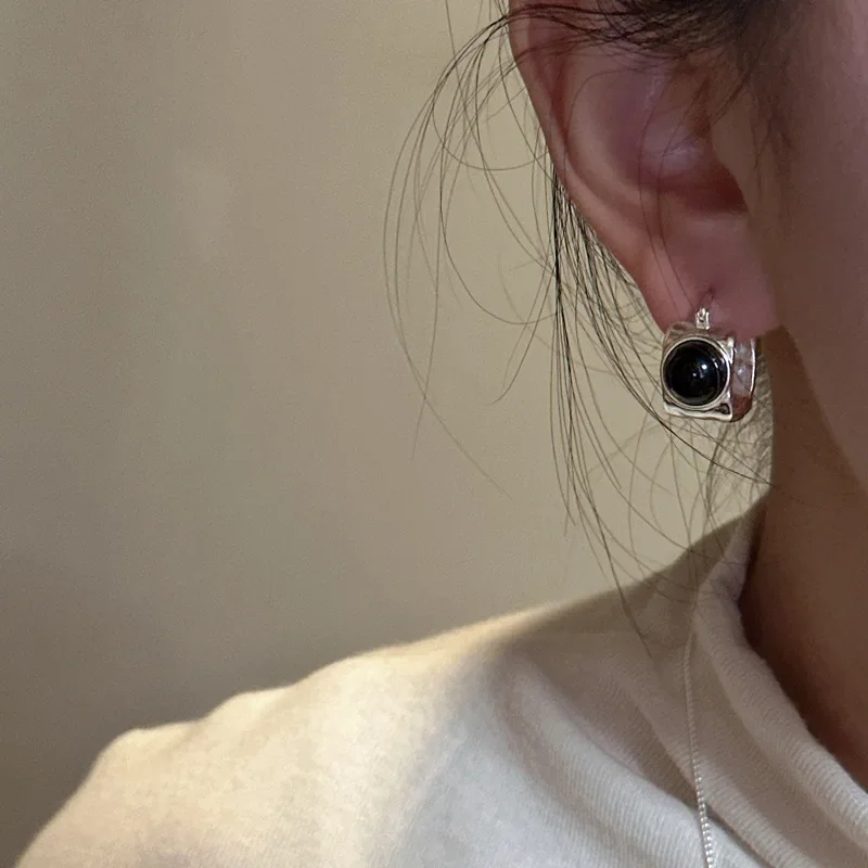 S925 Sterling Silver Korean Version Niche Design Agate Square EarringsKorean Style Simple and Fashionable Texture Ear Buckle
