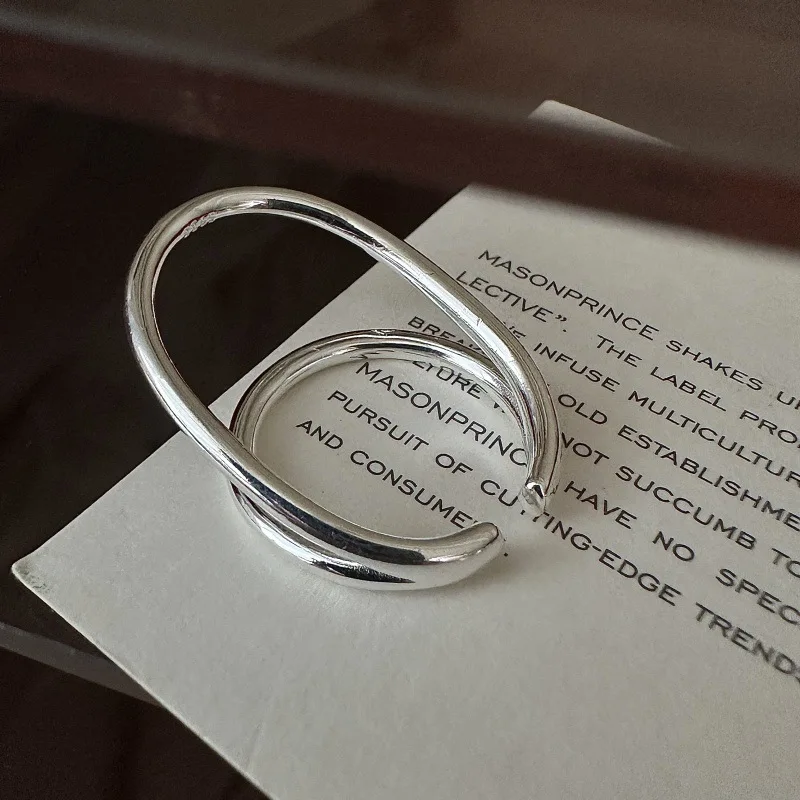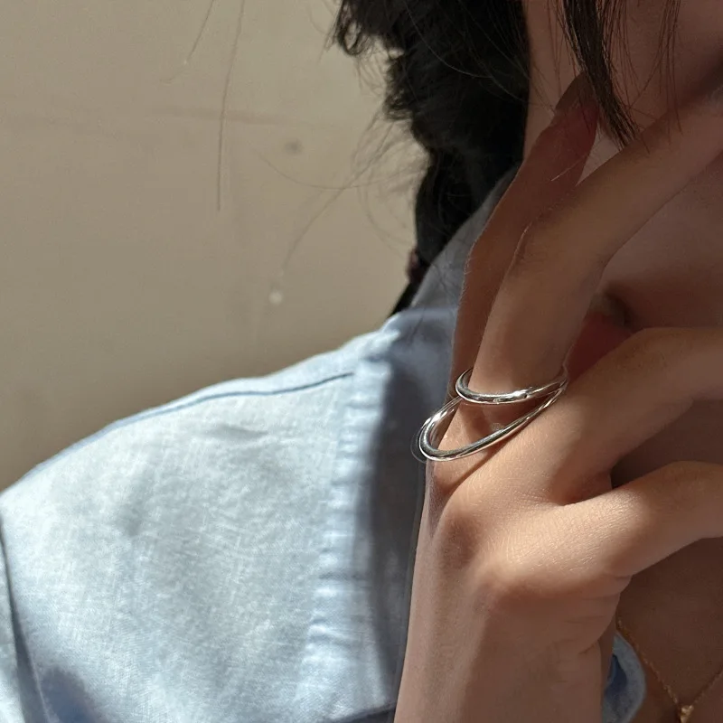 S925 Sterling Silver Korean Version Niche Design Double-layer Texture Ring Japanese Simple Fashion Ring Wholesale