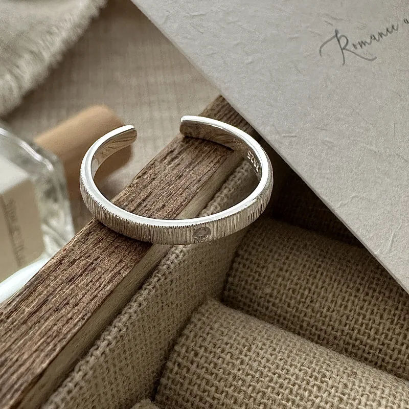 S925 Sterling Silver Korean Version Niche Design Sense Retro Engraved Gold Craft Ring Spanish Fashion INS Flash