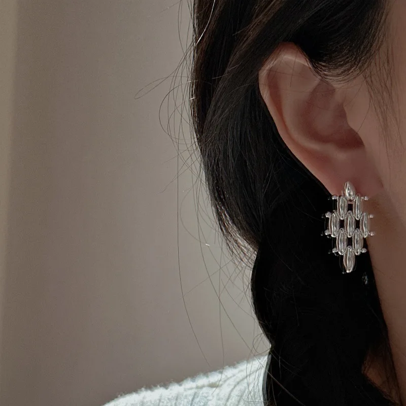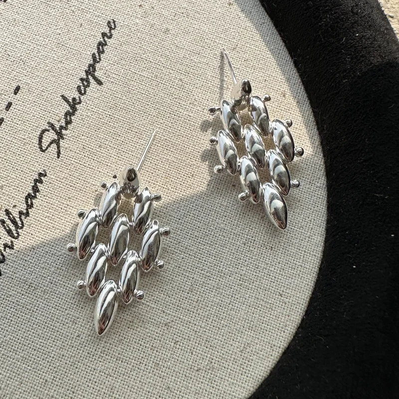 S925 Sterling Silver Korean Version Niche Design Sense Rice Beaded Earrings Simple Fashionable Personalized Woven Earrings