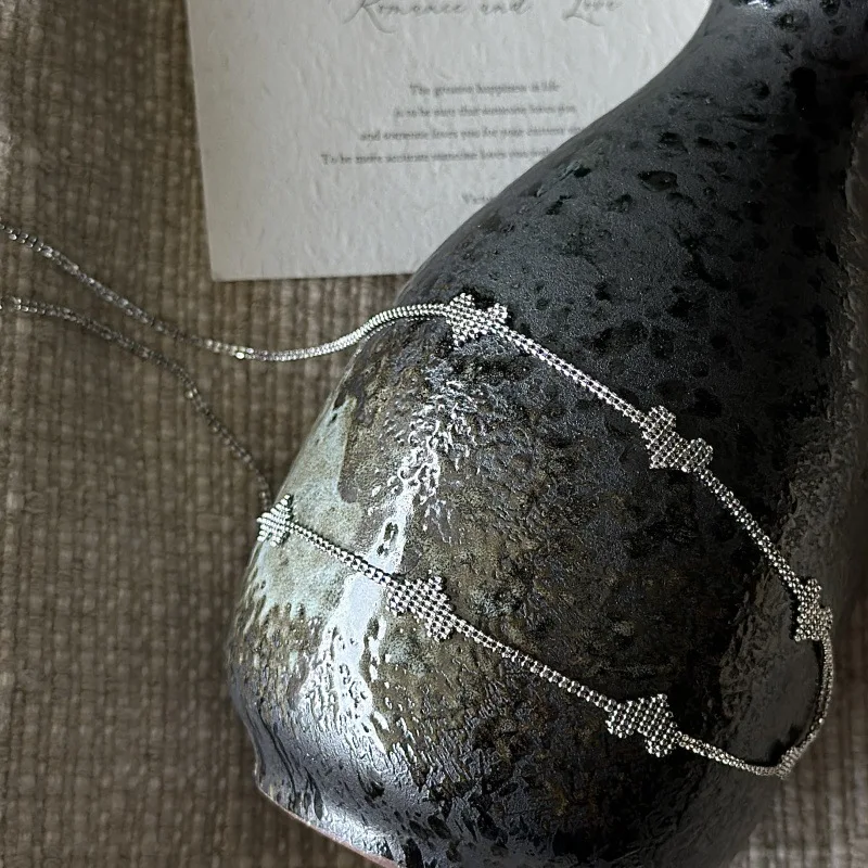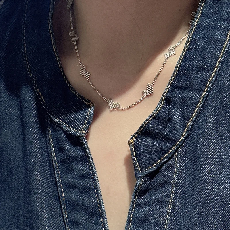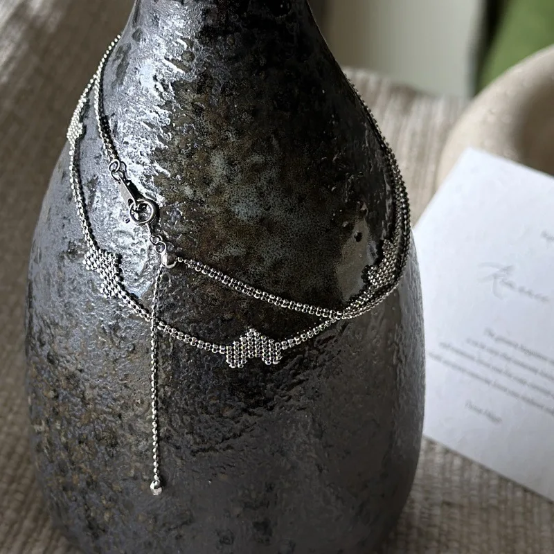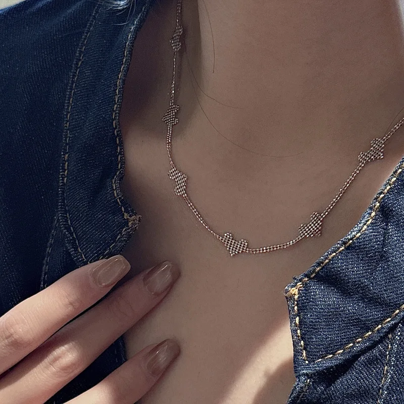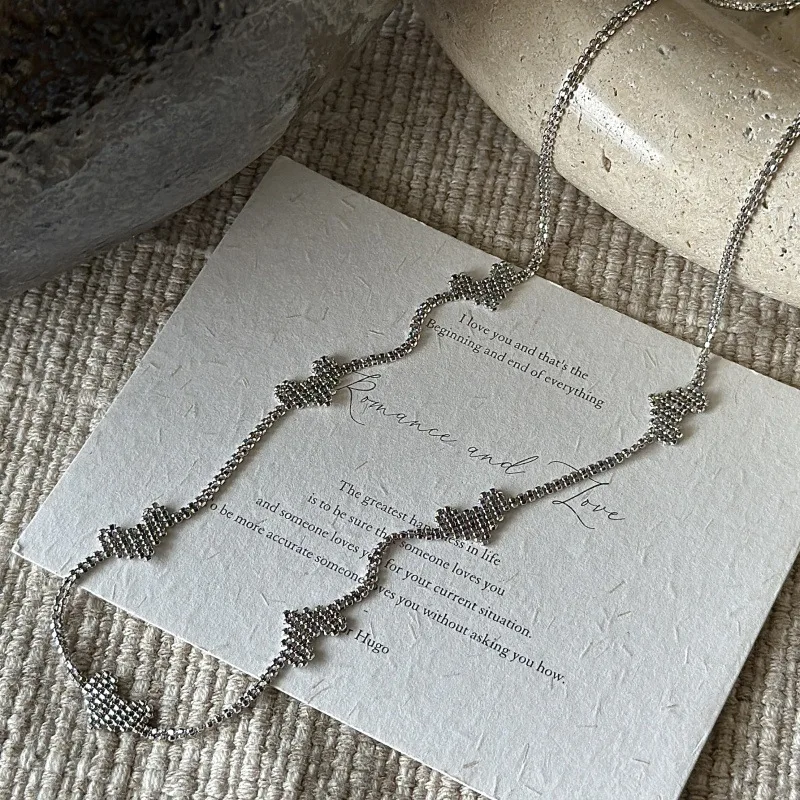 S925 Sterling Silver Korean Version Niche Design Sense Splicing Love Retro Collarbone Chain European Simple Imported Necklace